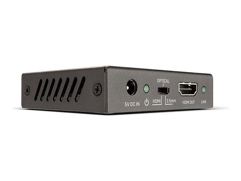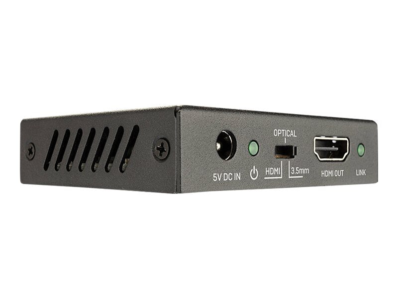 L'embeddeur audio HDMI 18G permet à l'utilisateur d'intégrer de manière transparente l'audio numérique et analogique d'un appareil TosLink (optique) ou 3,5 mm et de le transmettre au signal HDMI, tout en envoyant le signal vidéo à un écran ou un projecteur Ultra HD 4K. C'est une excellente solution pour connecter des entrées audio séparées afin de compléter le contenu vidéo, comme dans les bars sportifs, lorsqu'il s'agit de diffuser des commentaires alternatifs lors d'un événement en direct ou de faire jouer de la musique externe sur de la publicité numérique dans une installation commerciale.