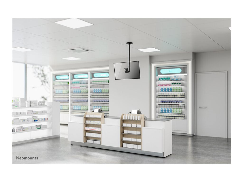 Neomounts FPMA-C050 - Support - pleine action - pour Écran LCD - noir - Taille d'écran : 10"-30" - montable au plafondLe support plafond Neomounts, modèle FPMA-C050, est un support plafond inclinable et pivotant pour les écrans plats jusqu'à 30" (76 cm). Ce support est un excellent choix pour une économie d'espace ou lorsque le montage mural et au sol n'est pas une option.