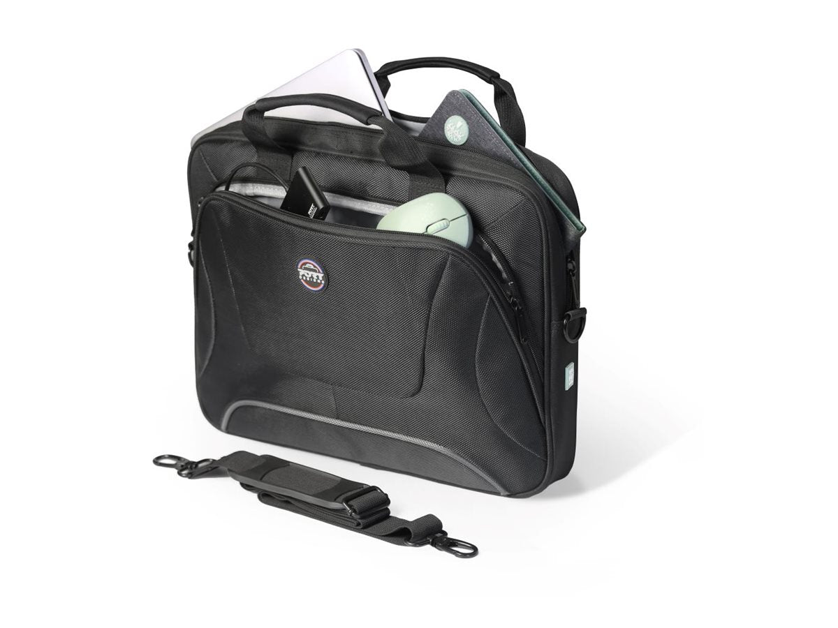 Une sacoche pour ordinateur portable à ouverture frontale conçue pour offrir une protection optimale à votre ordinateur portable', grâce à son compartiment dédié. Votre tablette trouvera sa place dans la poche qui lui est spécialement dédiée. Sa poignée ergonomique et sa sangle de transport amovible vous apporteront tout le confort nécessaire pour transporter votre ordinateur aussi bien à la main que sur votre épaule. Sa sangle à l'arrière vous permettra de la fixer sur un trolley. Une poche à l'avant vous donnera un accès rapide à votre téléphone portable pour une meilleure organisation.