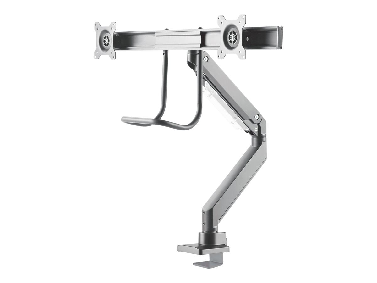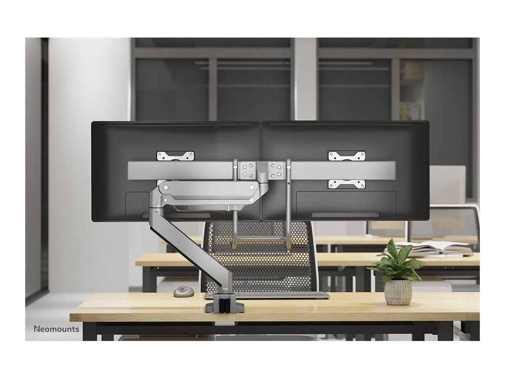 Neomounts NM-D775DX - Kit de montage - pleine action - pour 2 écrans LCD - argent - Taille d'écran : 10"-32" - pinces montables, oeillet, montrable sur bureauLa technique de Neomounts Select, inclinaison de 20°, rotation de 360° et pivot de 180°/360° permet au montage de changer l'angle de vue pour profiter pleinement des capacités des écrans plats. La hauteur est facilement réglable jusque à 60 centimètres grâce à un ressort à gaz. La profondeur est réglable jusque à 63 cm. Une gestion des câbles unique cache et achemine les câbles pour garder le lieu de travail bien rangé.