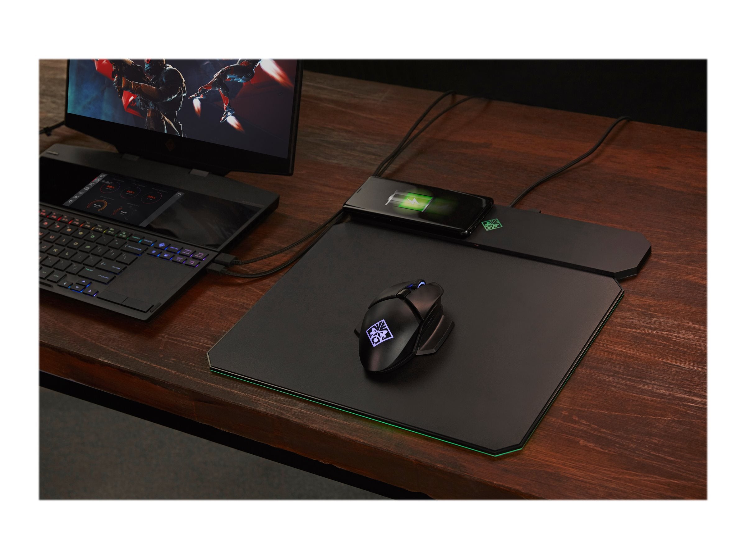 OMEN by HP Outpost - Tapis de souris - avec chargeur sans fil Qi - pour OMEN by HP Laptop 15, 16, 17, 17t, Pavilion Laptop 15