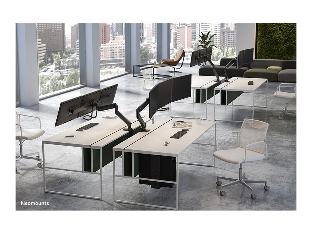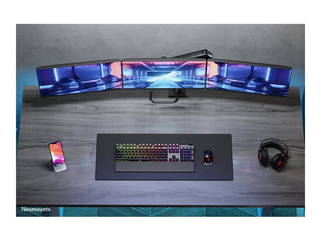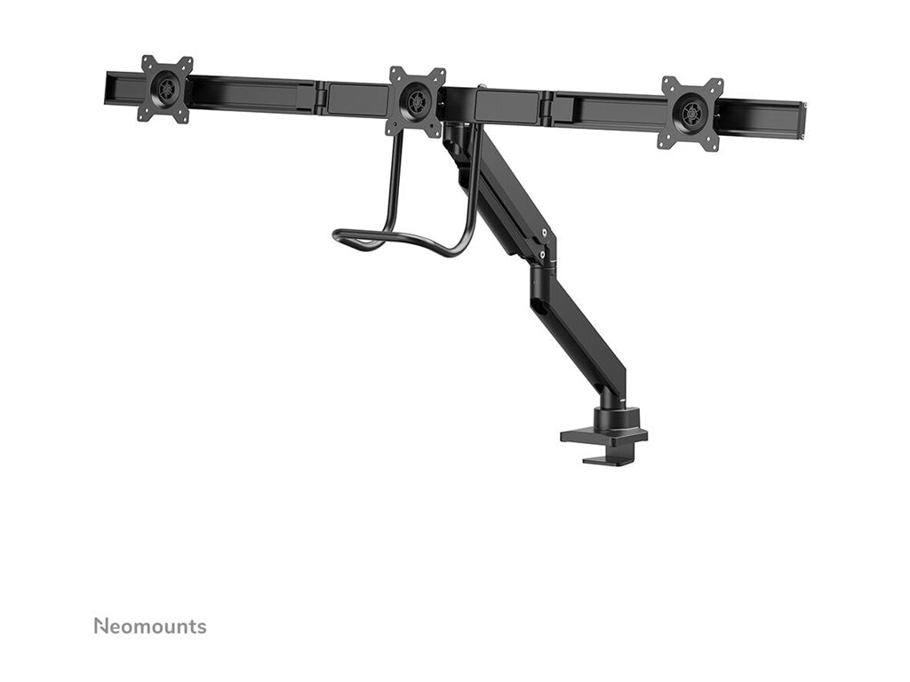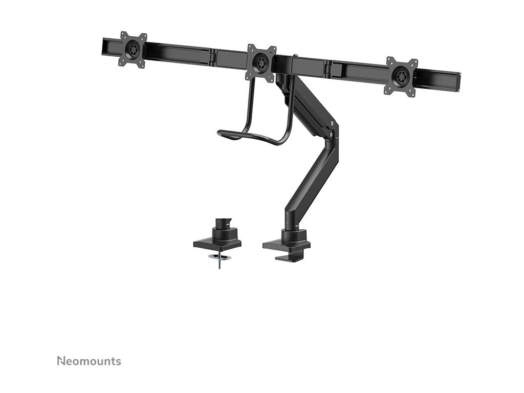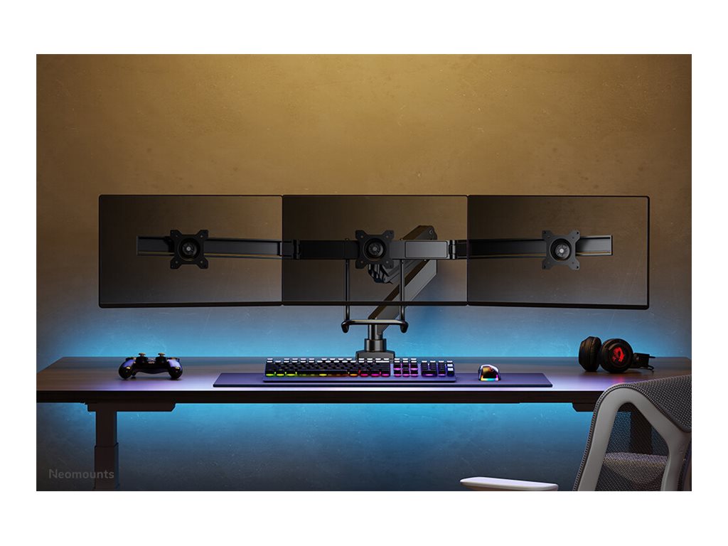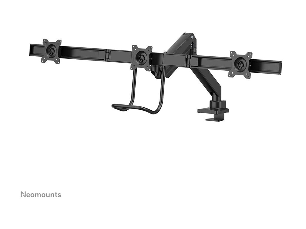Neomounts NM-D775DX3 - Kit de montage - pleine action - pour 3 écrans LCD - noir - Taille d'écran : 17"-27" - pinces montables, oeillet, montrable sur bureauLe support de bureau Neomounts Select, modèle NM-D775DX, s'incline, se tourne et pivote, il est adapté pour trois écrans plats jusqu'à 24" (61 cm). Ce support avec poignée est un excellent choix pour économiser de l'espace sur les bureaux en l'installant à l'aide d'une pince de bureau ou œillet à monter.