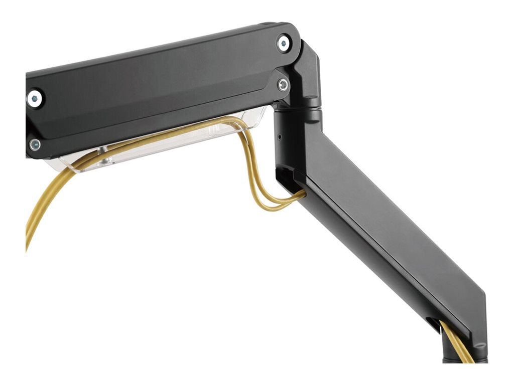 La technique de Neomounts Select, inclinaison de 20°, rotation de 360° et pivot de 180° permet au montage de changer l'angle de vue pour profiter pleinement des capacités des écrans plats. La hauteur est facilement réglable jusque à 60 centimètres grâce à un ressort à gaz. Profondeur réglable jusque à 63 cm. Une gestion des câbles unique cache et achemine les câbles pour garder le lieu de travail bien rangé.