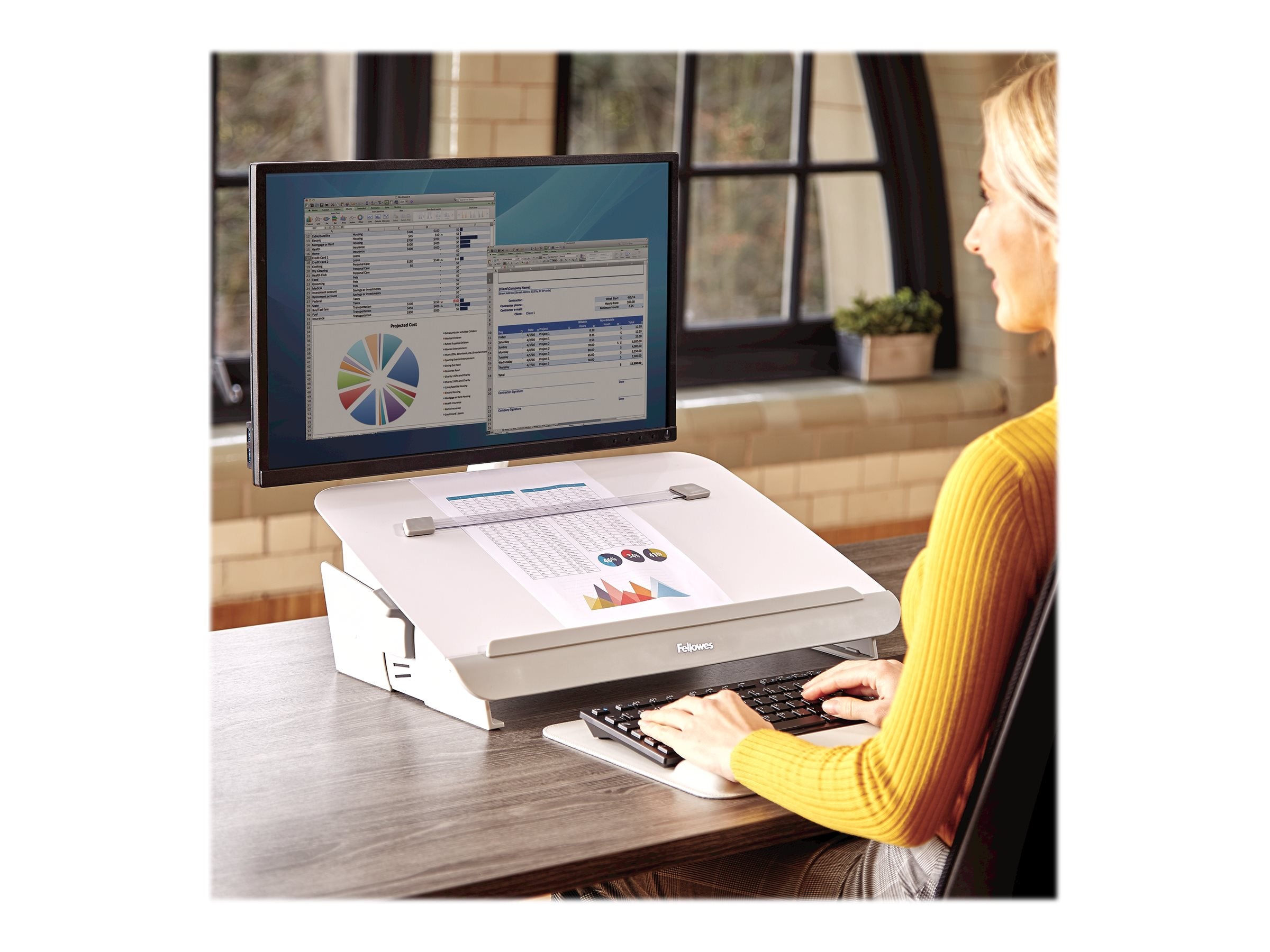 Avec le porte-documents Hana, vous pouvez travailler dans une position ergonomique lorsque vous utilisez des documents papier pour éviter les douleurs cervicales ainsi que la fatigue oculaire.