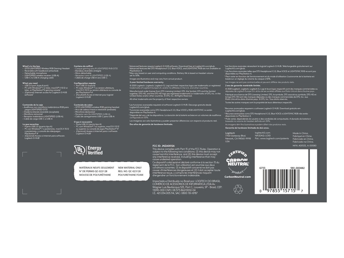 • LOGITECH G G733 LIGHTSPEED Wireless RGB Gaming Headset Headset full si