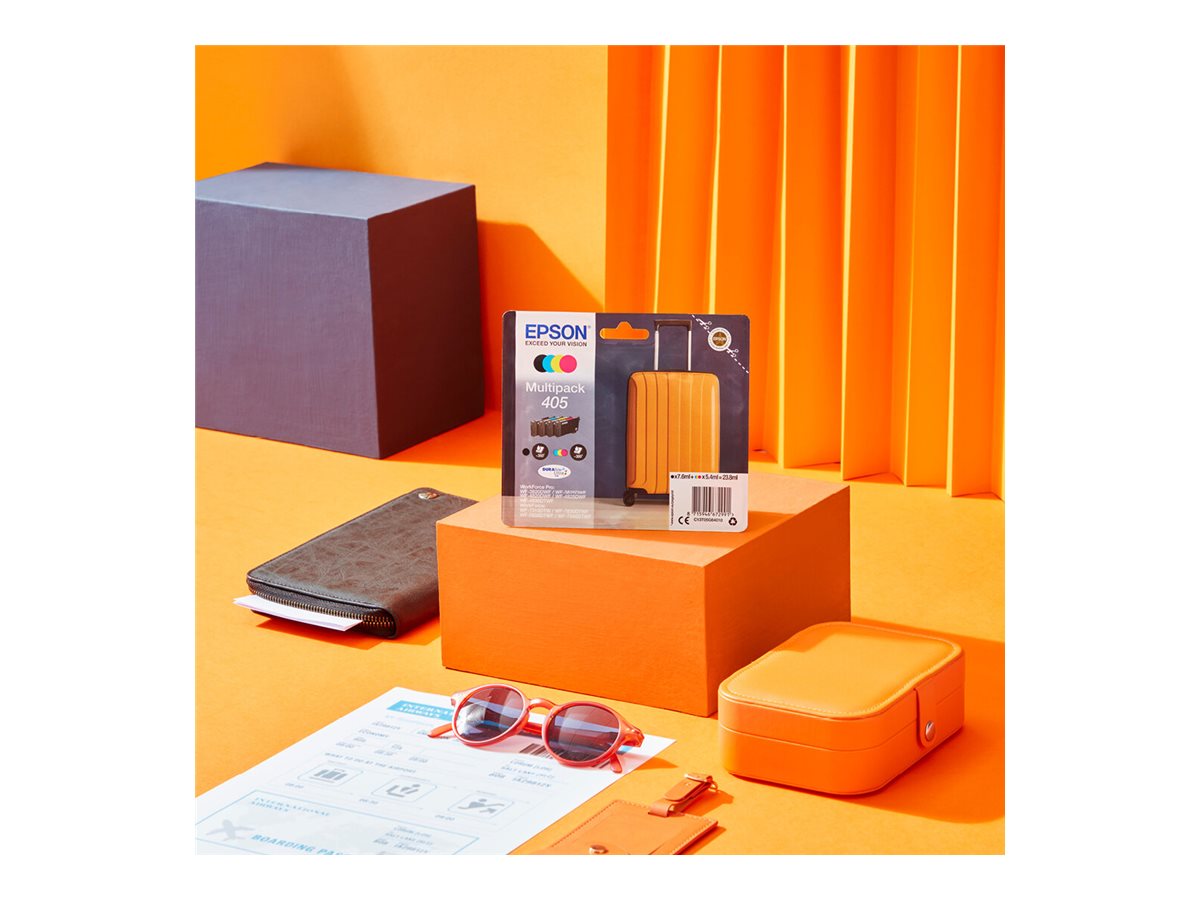 Epson 405 - Pack de 4 - noir, jaune, cyan, magenta - original - cartouche d'encre - pour WorkForce WF-7310, 7830, 7835, 7840, WorkForce Pro WF-3820, 3825, 4820, 4825, 4830, 7840L'encre DURABrite Ultra Epson est idéale pour créer des documents professionnels de qualité laser. Grâce à son système d'encre intégralement pigmentaire, les documents sont résistants à l'eau, au maculage et aux surligneurs. De plus, le séchage rapide est idéal pour l'impression recto verso. Une cartouche abordable est disponible pour chaque type d'utilisateur avec des tailles standard et très haute capacité. Repérez-la facilement en magasin en recherchant le visuel Valise.