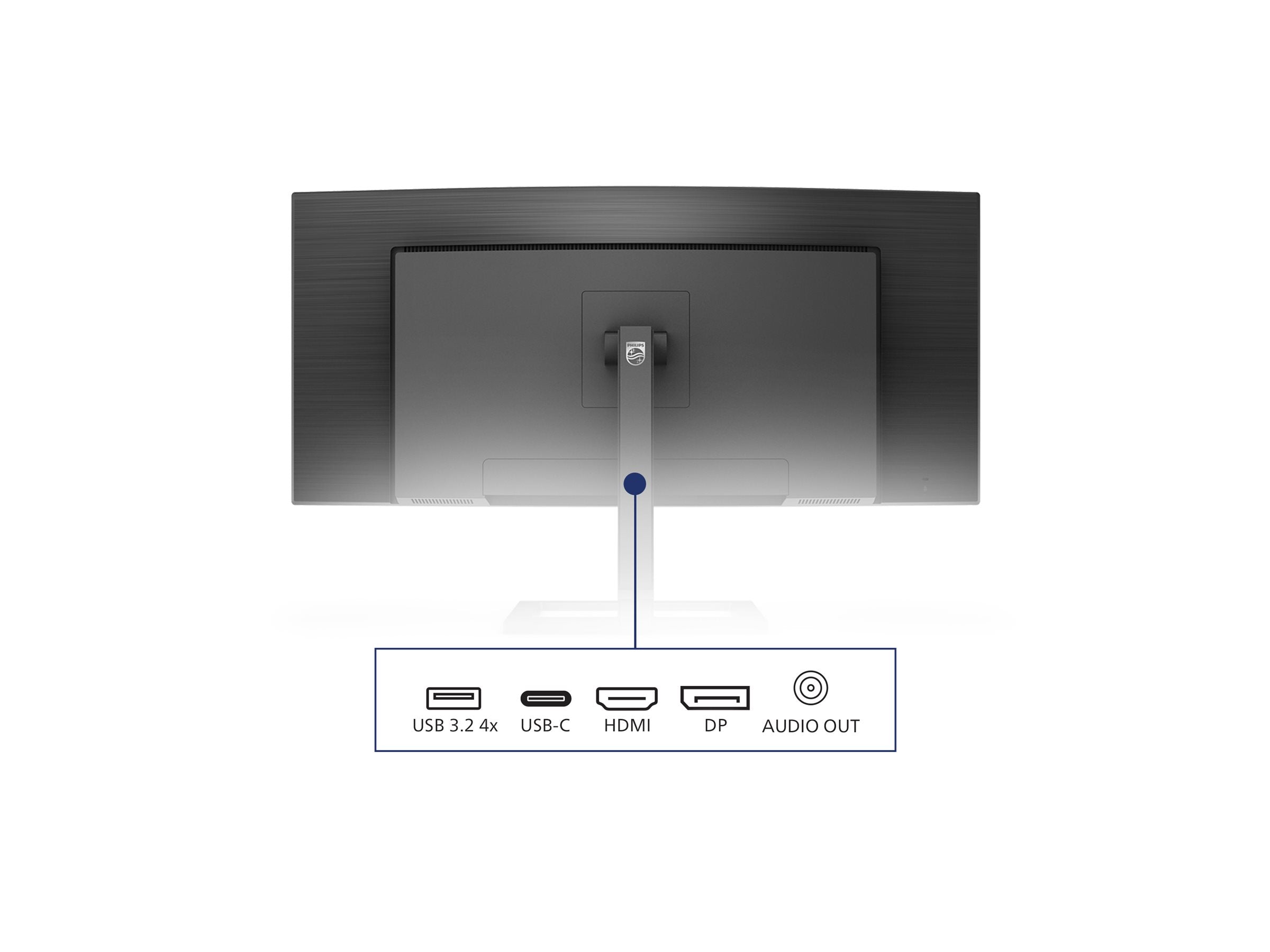 Philips E-line 346E2CUAE - Écran LED - incurvé - 34" - 3440 x 1440 UWQHD @ 100 Hz - VA - 300 cd/m² - 3000:1 - 1 ms - HDMI, DisplayPort, USB-C - haut-parleurs - noir texturéL'écran Philips E-line UltraWide affiche une image panoramique étendue. Sa dalle CrystalClear WQHD, sa technologie Ultra Wide-Color et son socle ergonomique optimisent les conditions de visionnement. MultiView répond à vos besoins en matière de fonctionnalité et de productivité.