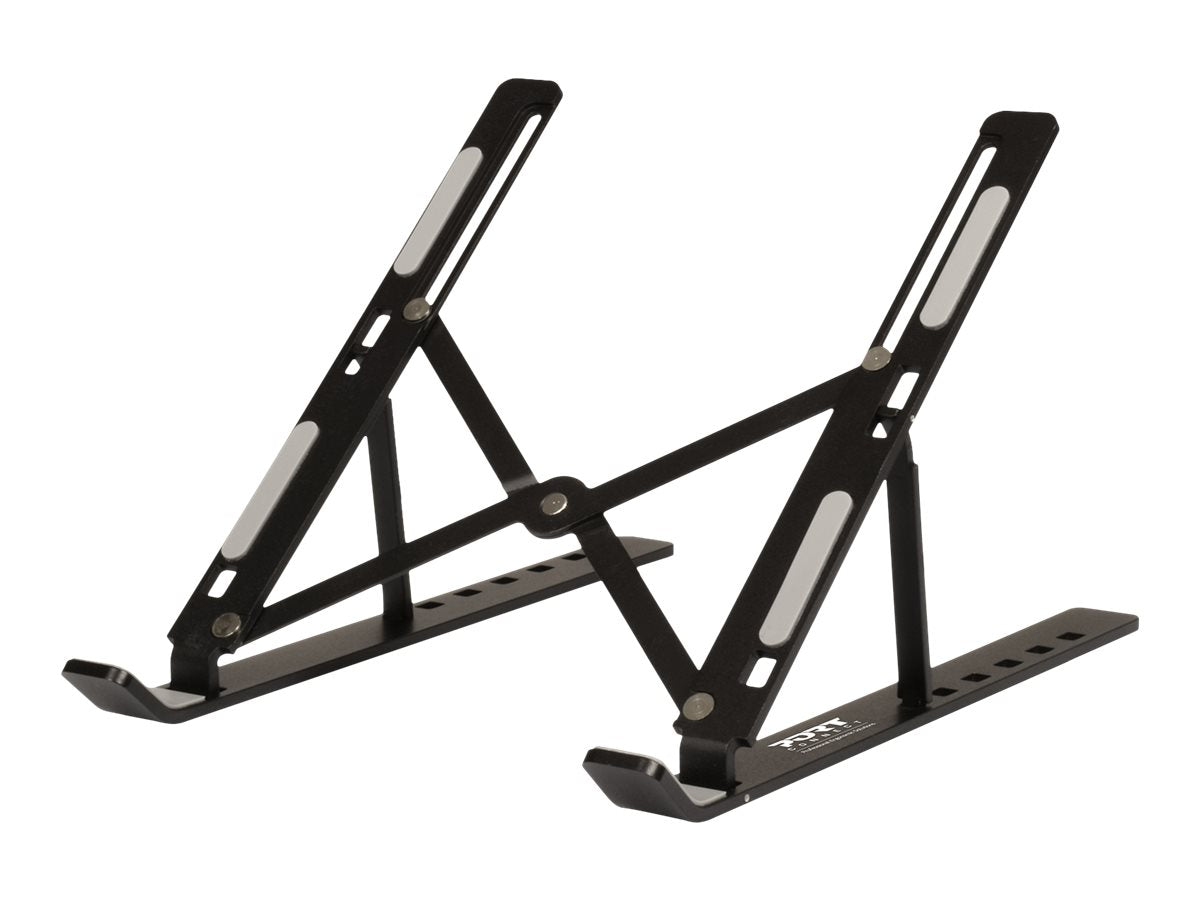 PORT Connect Travel et Foldable - Support pour ordinateur portable - 10" - 15.6"Le support de voyage et pliable pour ordinateur portable de PORT Connect est compatible avec les ordinateurs portables de 10" à 15,6" et la plupart des tablettes. Son design ergonomique donne le choix entre 6 angles différents permettant l'adoption d'une posture confortable et naturelle. Il se transporte facilement dans sa pochette dédiée grâce à sa structure ultra-légère et pliable. De plus, son corps en aluminium entièrement ouvert, dissipant la chaleur, maximise les performances de l'ordinateur portable lors d'une utilisation prolongée. Une sécurité optimale de l'appareil est également assurée grâce à ses crochets de sécurité et ses patins antidérapants.