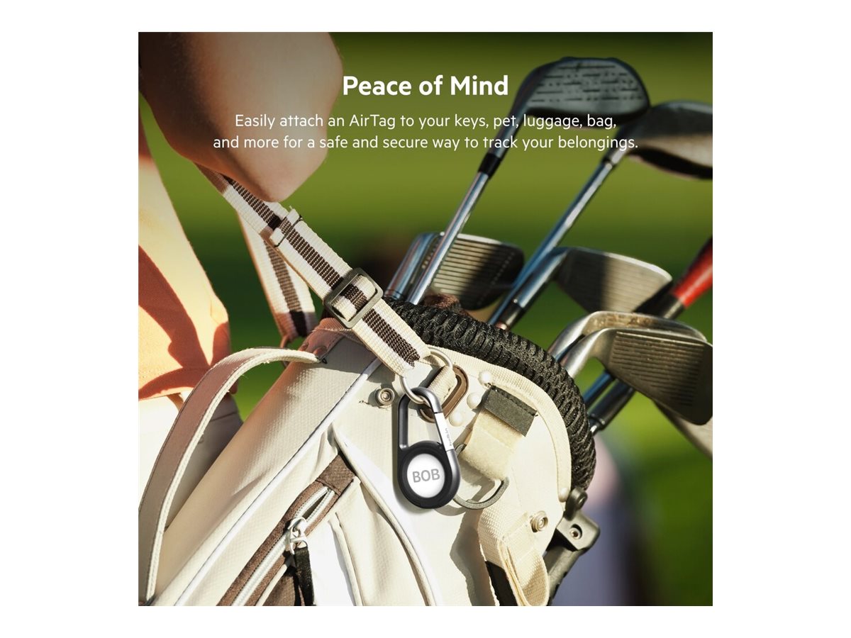 Belkin Secure Holder with Carabiner - Étui pour airtag - noir - pour Apple AirTagSuivez vos effets personnels avec facilité et confiance grâce au support sécurisé avec mousqueton pour airtag. Il est doté d'un système d'encliquetage et de verrouillage qui garantit que votre airtag reste en place. Son mousqueton durable est facile à attacher à vos effets personnels grâce à une boucle métallique pratique, solide et sûre et à une porte à ressort. Les bords surélevés du Secure Holder protègent des coups et des rayures, tandis que sa conception ouverte permet de voir les deux côtés de l'airtag afin que toute personnalisation soit facilement visible.