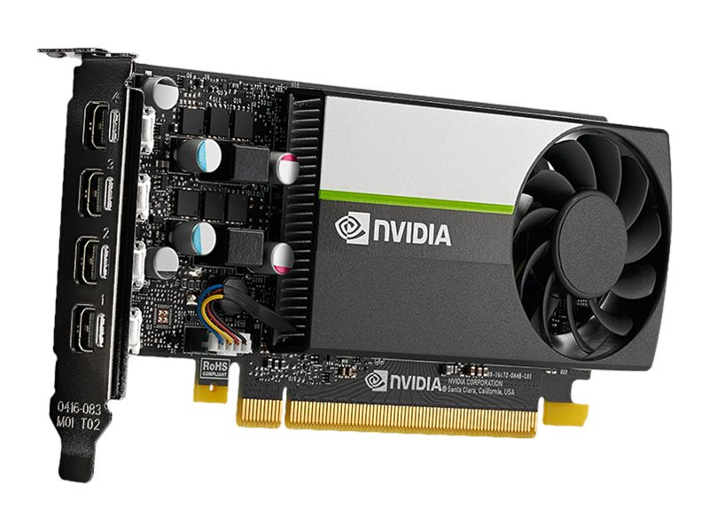 NVIDIA T1000 - Carte graphique - 8 Go GDDR6 - PCIe 3.0 x16 profil bas - 4 x Mini DisplayPortLa carte graphique T1000 pour PC de bureau offre la puissance, les fonctionnalités et la fiabilité que les utilisateurs d'entreprise attendent des solutions de visualisation professionnelle de NVIDIA, tout ceci au sein d'un format compact à hautes performances.