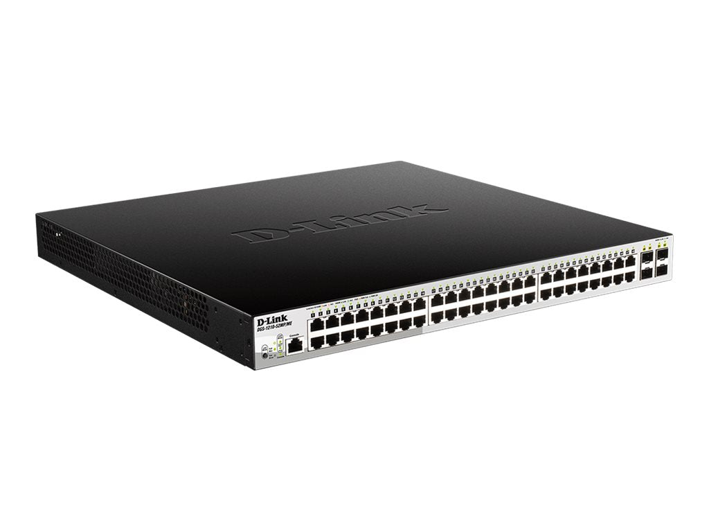 D-Link DGS 1210-52MP/ME - Commutateur - Géré - 48 x 10/100/1000 (PoE) + 4 x Gigabit SFP - Montable sur rack - PoE (370 W)Les commutateurs Ethernet métropolitains de la série DGS-1210/ME sont une famille de commutateurs Ethernet idéale pour les applications Ethernet métropolitaines. Ces commutateurs Ethernet métropolitains offrent 8/16/24/48 connexions cuivre sur des ports Gigabit Ethernet mis à niveau, ainsi que des ports Gigabit SFP pour améliorer la bande passante de la liaison montante. La protection contre les surtensions garantit la résilience contre les pics électriques inattendus, tandis qu'une suite complète de fonctions de sécurité et de gestion protège votre réseau contre les menaces internes et externes.