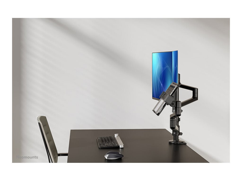 Neomounts DS20-425BL2 - Kit de montage (fixation par pince pour bureau, passe-fil de bureau, plateau pour ordinateur portable, bras pour moniteur, adaptateur VESA, bras de plateau d'ordinateur portable) - bras réglable en mouvement complet - pour écran LCD / ordinateur portable - acier - noir - Taille d'écran : 17"-27" (LCD display) / 11.6"-17.3" (notebook)Le Neomounts DS20-425BL2 est un support de bureau à mouvement complet. La technologie polyvalente d'inclinaison (120°), de rotation (360°) et de pivotement (180°) vous permet d'ajuster le support à la hauteur et à l'angle de vue optimaux pour votre écran et votre ordinateur portable. En outre, le support dispose d'un réglage manuel de la hauteur et de la profondeur pour créer la position de travail idéale.