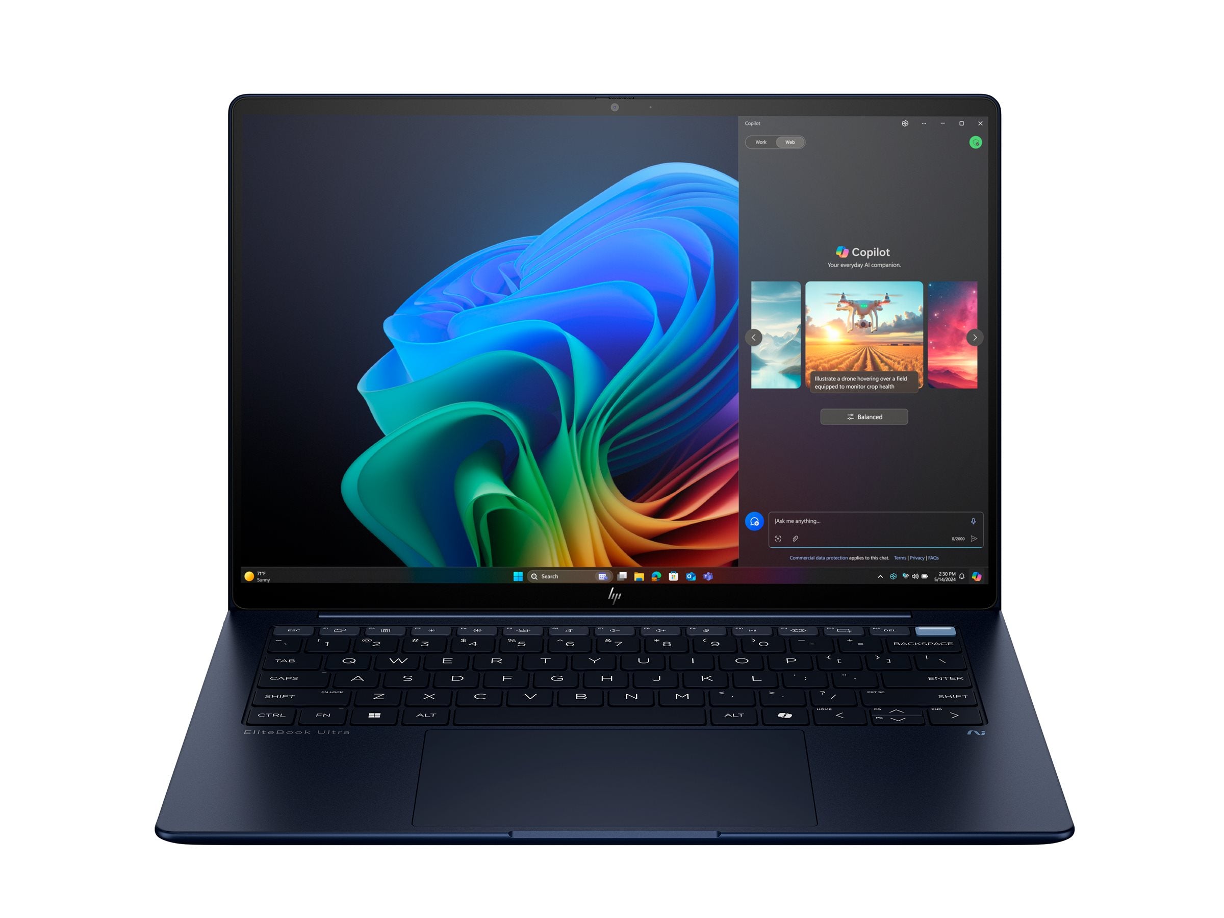 • HP EliteBook Ultra G1i PC IA Nouvelle génération Intel Core Ultra 5 228V 14p 3K Touch 32Go 512Go SSD W11P Copilot + PC 3/3/0 SmartB