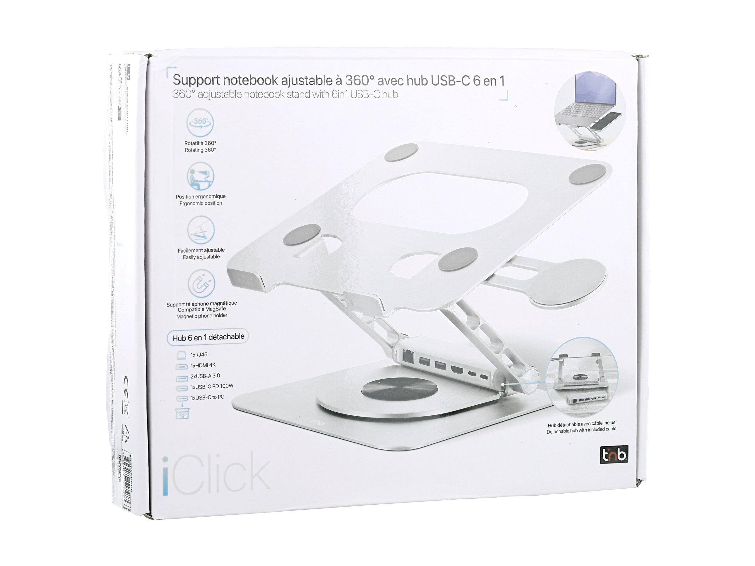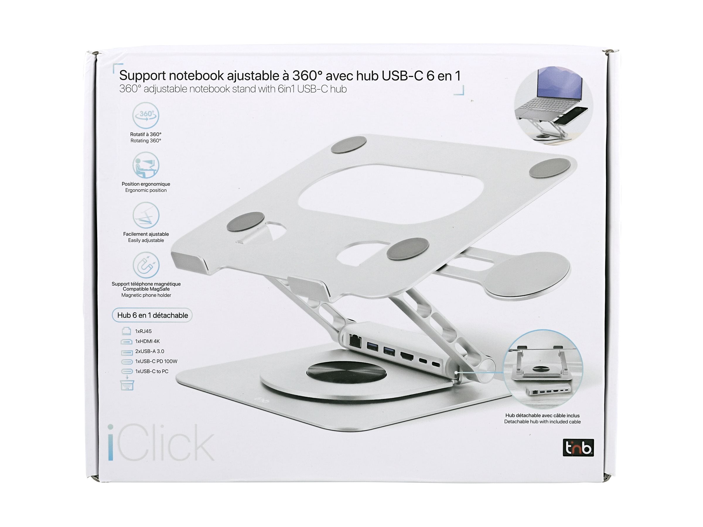 TNB iClick 360 adjustable notebook stand with detachable 6in1 hub aluminum