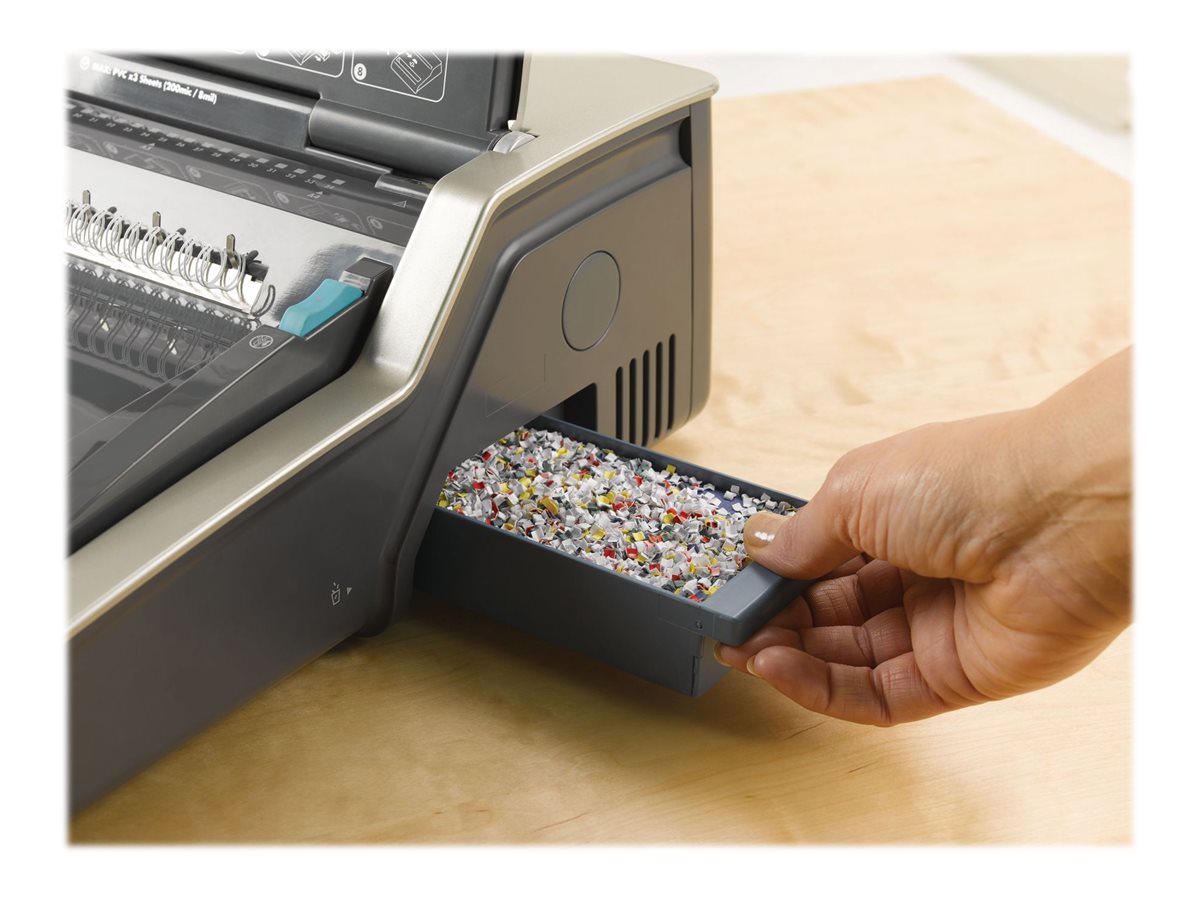 Le perforelieur Galaxy-E Wire par anneaux métal est conçu pour une utilisation intensive au bureau, il donne un rendu professionnel à vos présentations. Il perfore jusqu'à 20 feuilles en une fois par une simple pression de bouton et relie jusqu'à 130 feuilles. Le Perforelieur Galaxy Wire est conçu pour une grande simplicité d'utilisation. Butée de taquage pour un alignement précis du document, bac de rangement des anneaux et sélecteur du diamètre de l'anneau pour un choix rapide du consommable. Equipé de poinçon débrayable pour le format A5 et d'une profondeur de perforation réglable, il relie tout format et toute épaisseur de documents jusqu'à 130 feuilles. Livré avec un kit de consommables pour relier 20 documents. Garantie de 2 ans.