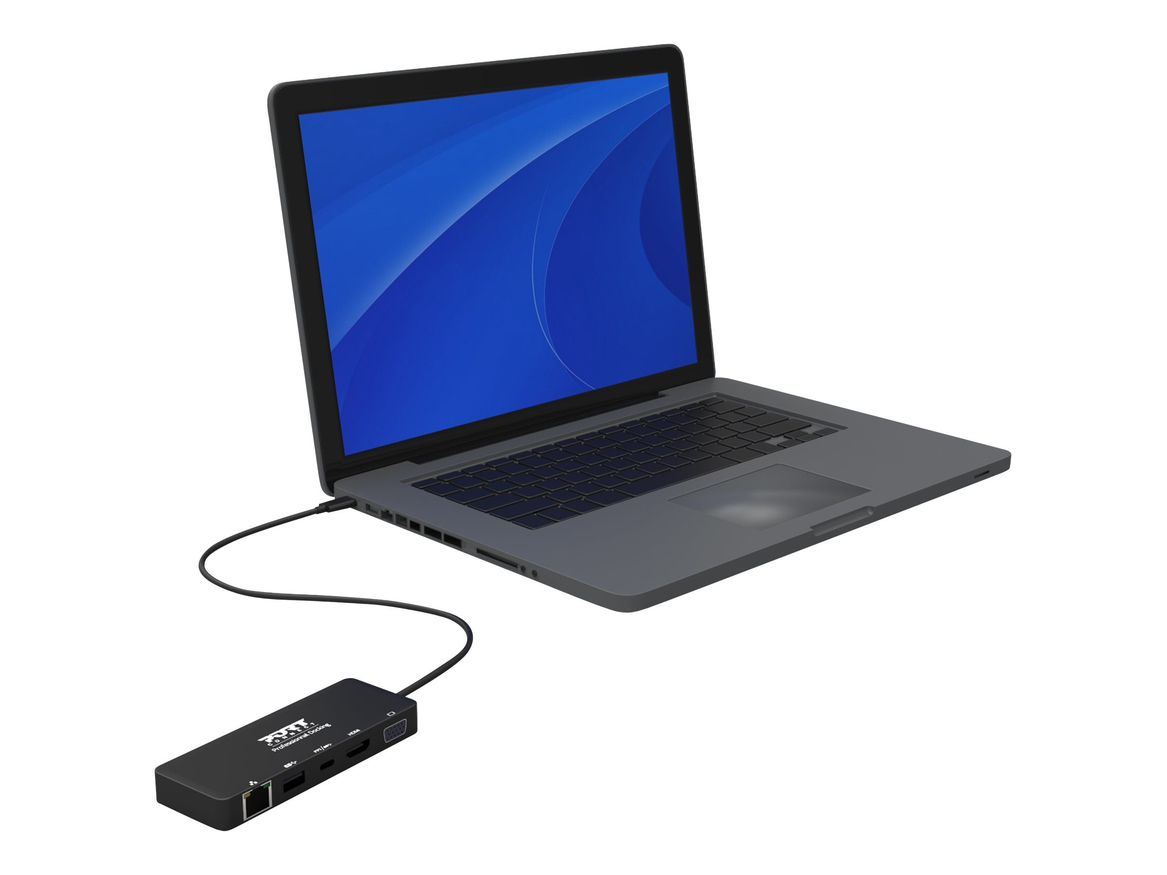PORT connect DOCKING TYPE C TRAVEL 1 X 4K - Station d'accueil - USB-C - VGA, HDMI - 1GbELa Station d'accueil universelle USB-C 901909 est la solution idéale pour étendre la connectivité de votre ordinateur portable ou de votre appareil USB-C.