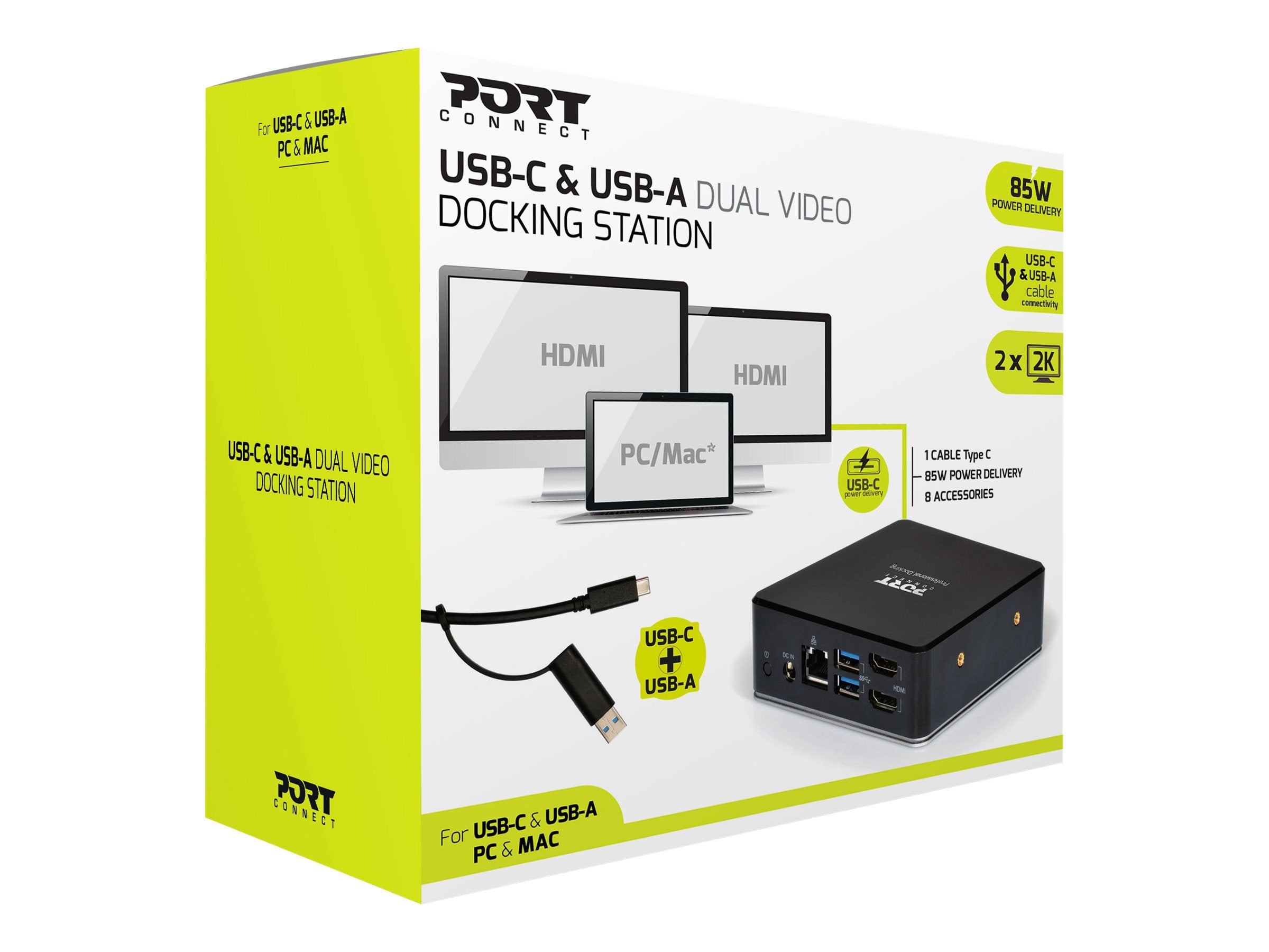 PORT connect USB-C et USB-A Dual Video Docking Station 2 X 2K - Station d'accueil - USB-C / USB 3.0 - 2 x HDMI - 1GbE - 100 Watt - Royaume-Uni
