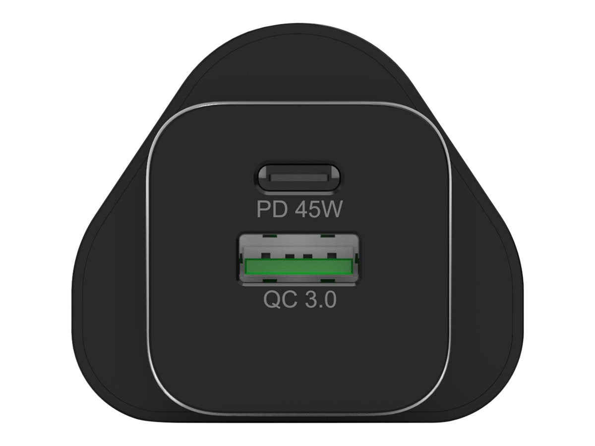 PORT Connect - Adaptateur secteur - 45 Watt - 3.4 A - PD, QC 3.0 - 2 connecteurs de sortie (USB, 24 pin USB-C) - noir