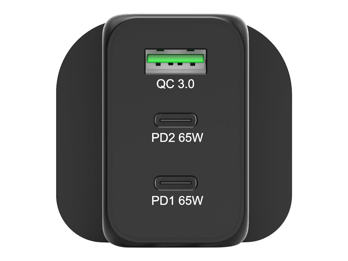 PORT Connect - Adaptateur secteur - 65 Watt - 5 A - PD, QC 3.0 - 3 connecteurs de sortie (USB, 2 x USB-C) - sur le câble : USB-C - noir