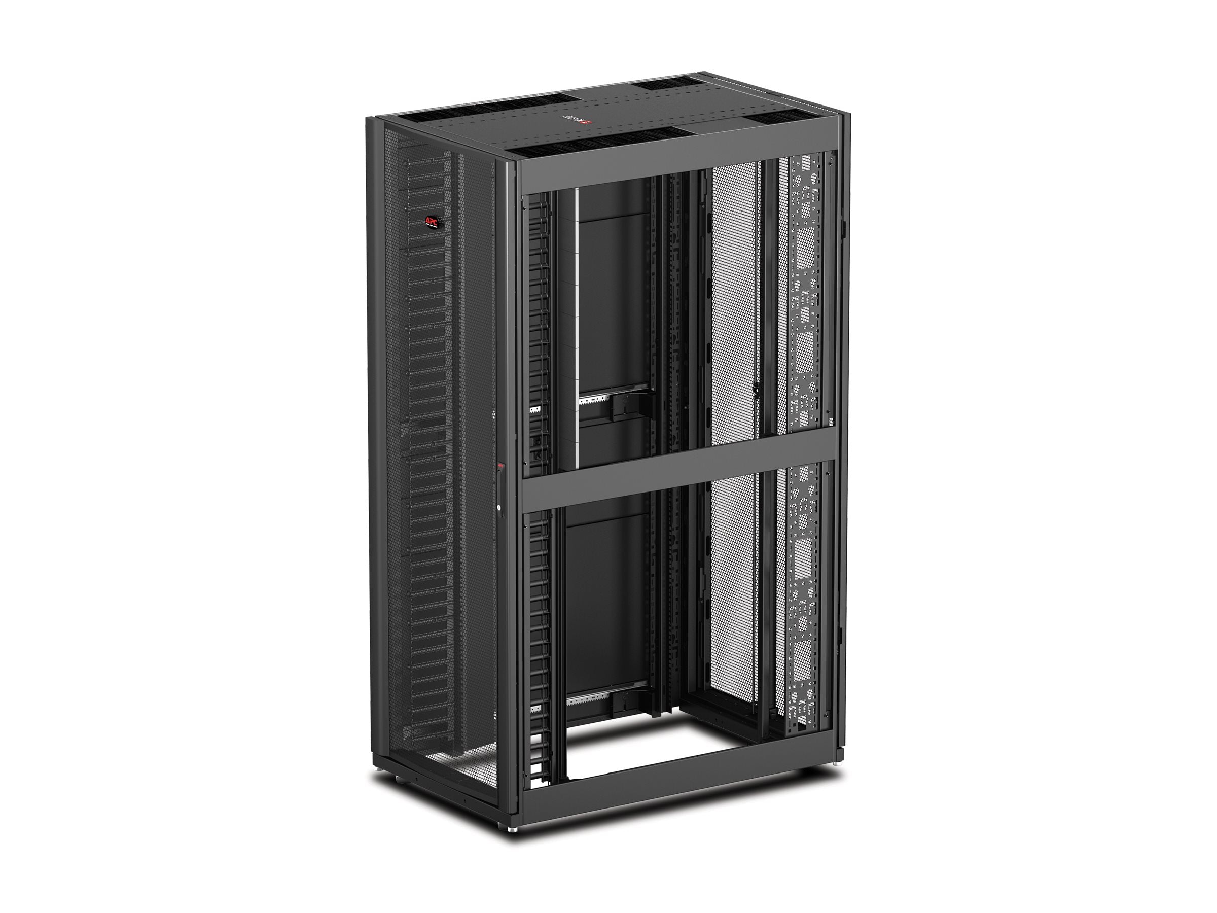 APC NetShelter SX Networking Enclosure with Sides - Rack - noir - 48U - 19" - Conformité TAACette armoire réseau haut de gamme de 48U, 750mm de largeur et 1200mm de profondeur est conçu pour optimiser la gestion et la sécurité des équipements dans un environnement à haute densité. Ce produit facilite l'organisation et la gestion des câbles, ainsi que le refroidissement des équipements informatiques. Equipée de roulettes pré-installées, elle peut être déplacée facilement. Ce produit est conforme aux normes UL 2416, UL 60950-1 et EIA-310E.