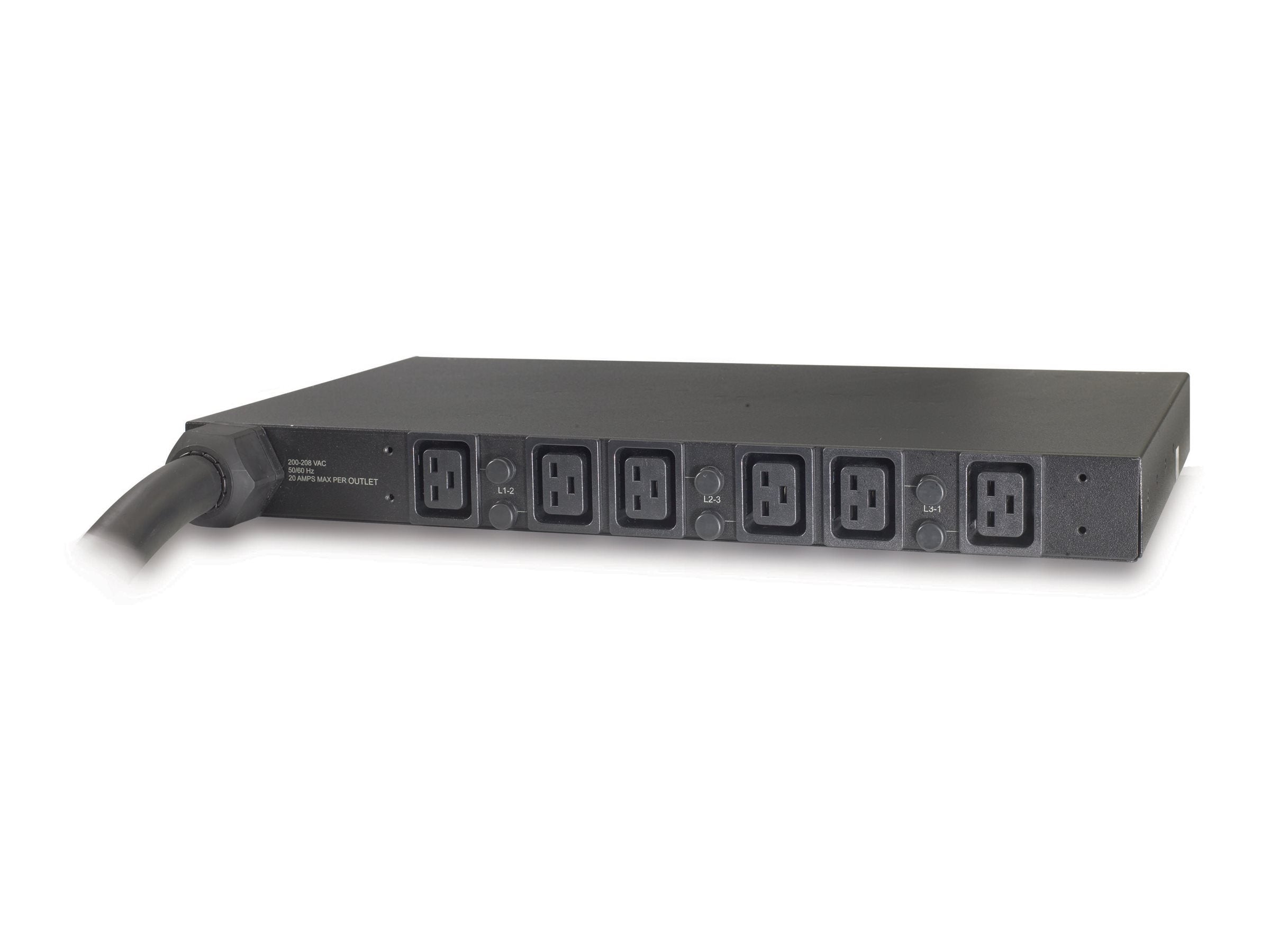 PDU en rack de base APC - Unité de distribution d'alimentation (rack-montable) - CA 208 V - triphasé - entrée : Hubbell CS8365C - connecteurs de sortie : 6 (IEC 60320 C19) - 1U - 2.4 m cordon - pour P/N: SCL500RMI1U, SMX1000C, SMX1500RM2UC, SMX1500RM2UCNC, SMX750C, SMX750CNCAPC propose un large éventail d'unités de distribution de l'alimentation pour rack de base permettant aux utilisateurs de distribuer les sorties électriques entre les équipements montés en rack. Des unités horizontales et verticales sont disponibles, ainsi qu'une grande variété d'entrées et de sorties électriques adaptées à la plupart des environnements électriques.
