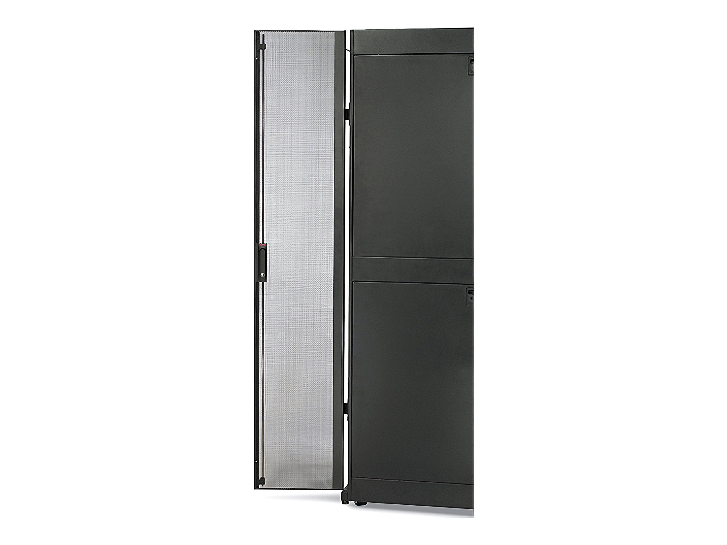 APC NetShelter SX Perforated Split Doors - Porte de rack - noir - 45U - pour P/N: NBPD0160A, NBWL0355A, NBWL0356A, SMX3000HV-BR, SRT1000RMXLI, SRT1500RMXLA-NCToutes les armoires NetShelter WX sont équipées de portes avant fermant à clé pour empêcher tout accès non autorisé.