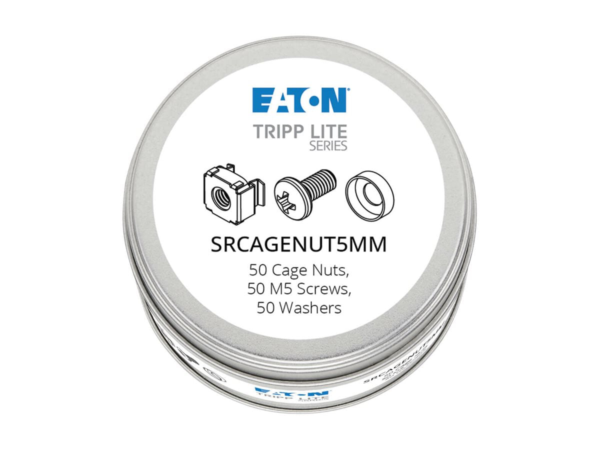 Eaton Tripp Lite Series Rack Enclosure Square Hole Hardware M5 Screws et Washers 50PC - Vis, écrous et rondelles pour rackLe SmartRack SRCAGENUTS Tripp Lite est compatible avec toutes les armoires rack à trous carrés. Le kit matériel à trous carrés comprend 50 boulons et 50 écrous cages M5 pour fixer les équipements aux rails pour montage en rack à trous carrés.