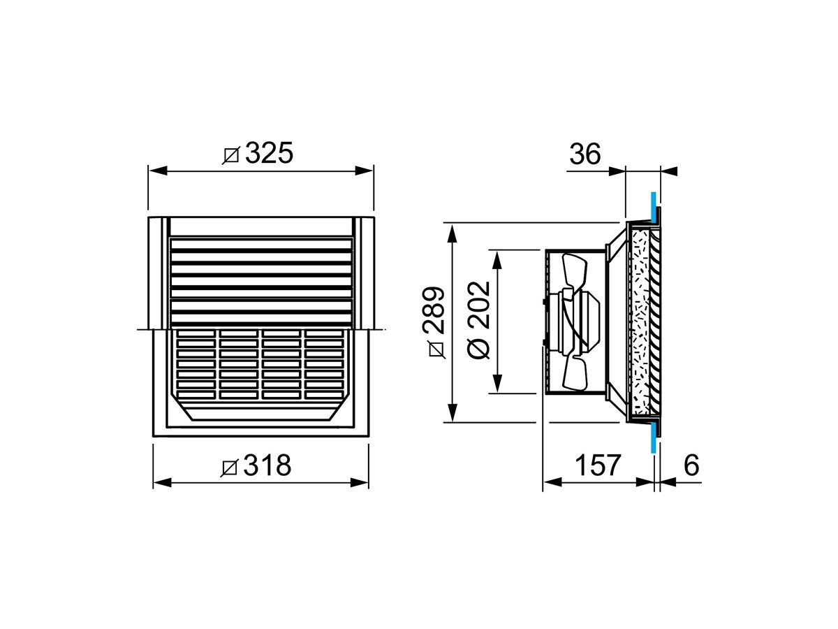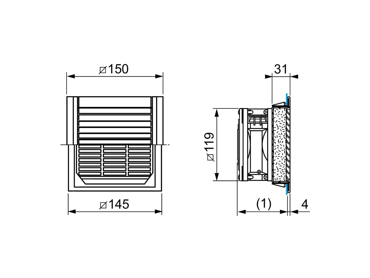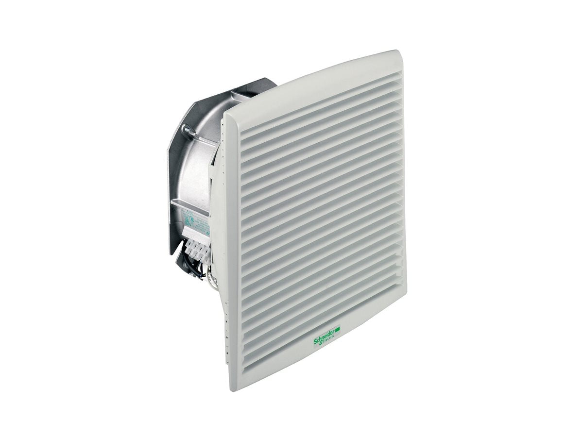 Schneider ClimaSys - Intégration d'un évent de rack - avec grille de sortie et filtre G2, 850 m³/h, IP54 - CA 230 V - gris, RAL 7035Ce ventilateur moteur ClimaSys dispose d'une protection IP54 et de 2 grilles de protection sur les faces avant et arrière, en thermoplastique (ASA PC). Le raccordement des bornes se fait par câble. 150W à 50 Hz, 195W à 60 Hz. Débit libre avec filtre standard de 803 m3 / h à 50 Hz et 838 m3 / h à 60 Hz. Dimensions de la découpe de 291 x 291 mm. Grille de sortie en thermoplastique injecté (ASA PC), gris clair RAL 7035. Connexions bornes par câble. 2 grilles de protection sur les faces avant et arrière. Indice de protection IP54.