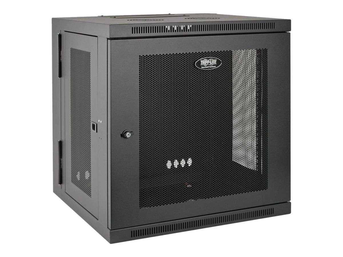 Eaton Tripp Lite Series 12U Wall Mount Rack Enclosure Server Cabinet Swinging Hinged Door Deep - Rack armoire - montable sur mur - noir - 12U - 19"L'armoire serveur Eaton Tripp Lite Series 12U Wall Mount Rack Enclosure offre une solution efficace pour organiser l'équipement dans un espace compact. Conçue pour un montage mural, cette armoire est dotée d'une porte avant et de panneaux latéraux verrouillables, garantissant la sécurité de votre équipement. Les panneaux latéraux rabattables et amovibles permettent un accès facile tout en facilitant la ventilation grâce aux panneaux latéraux ventilés. Avec une limite de poids de 90,7 kg, elle répond aux besoins de vos serveurs, ce qui est idéal pour les environnements variés où l'espace est limité. Cette armoire rack s'adapte aux racks standard de 19 pouces et est livrée avec des accessoires essentiels, notamment 2 clés, 20 écrous cage M6, des vis et des rondelles. Sa construction robuste garantit sa durabilité, tandis que sa conception bien pensée optimise sa fonctionnalité, en assurant à la fois l'accessibilité et la sécurité. Le boîtier pour rack Eaton Tripp Lite Series permet une gestion efficace de l'espace et offre une installation nette et organisée.