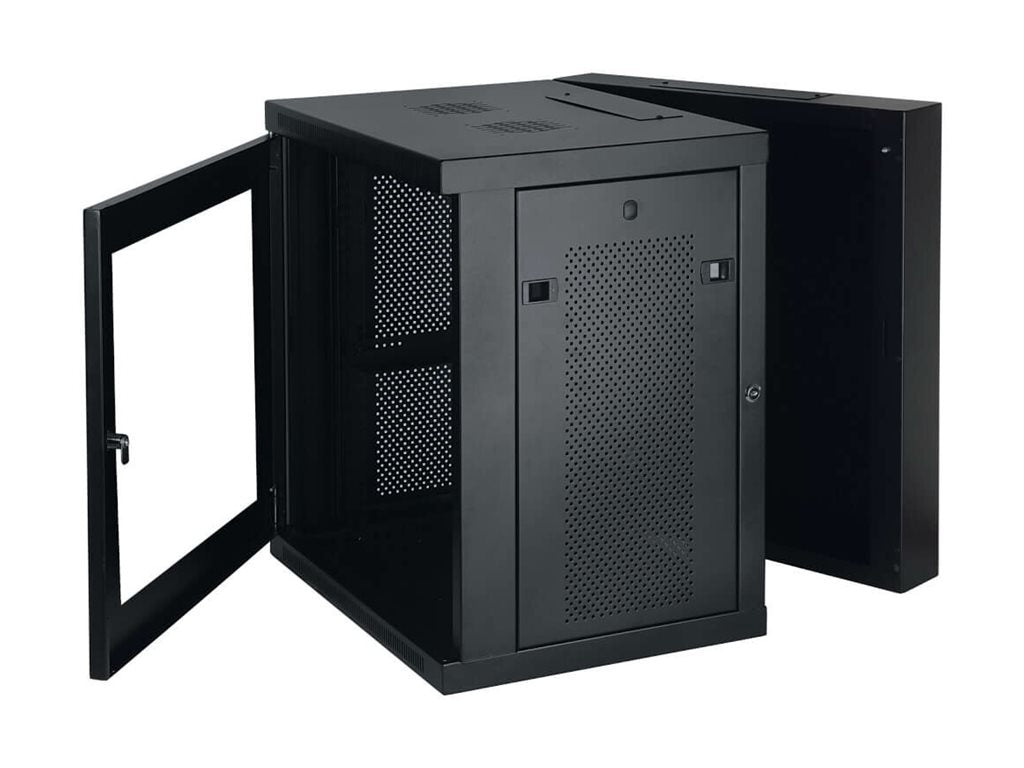 Eaton Tripp Lite Series 12U Wall Mount Rack Enclosure Server Cabinet Hinged Swinging Acrylic Window - Rack armoire - montable sur mur - noir - 12U - 19"Petite armoire rack à montage mural, profondeur de commutateur et profil compact 12U SmartRack à fenêtre en acrylique transparent et charnières dorsales.