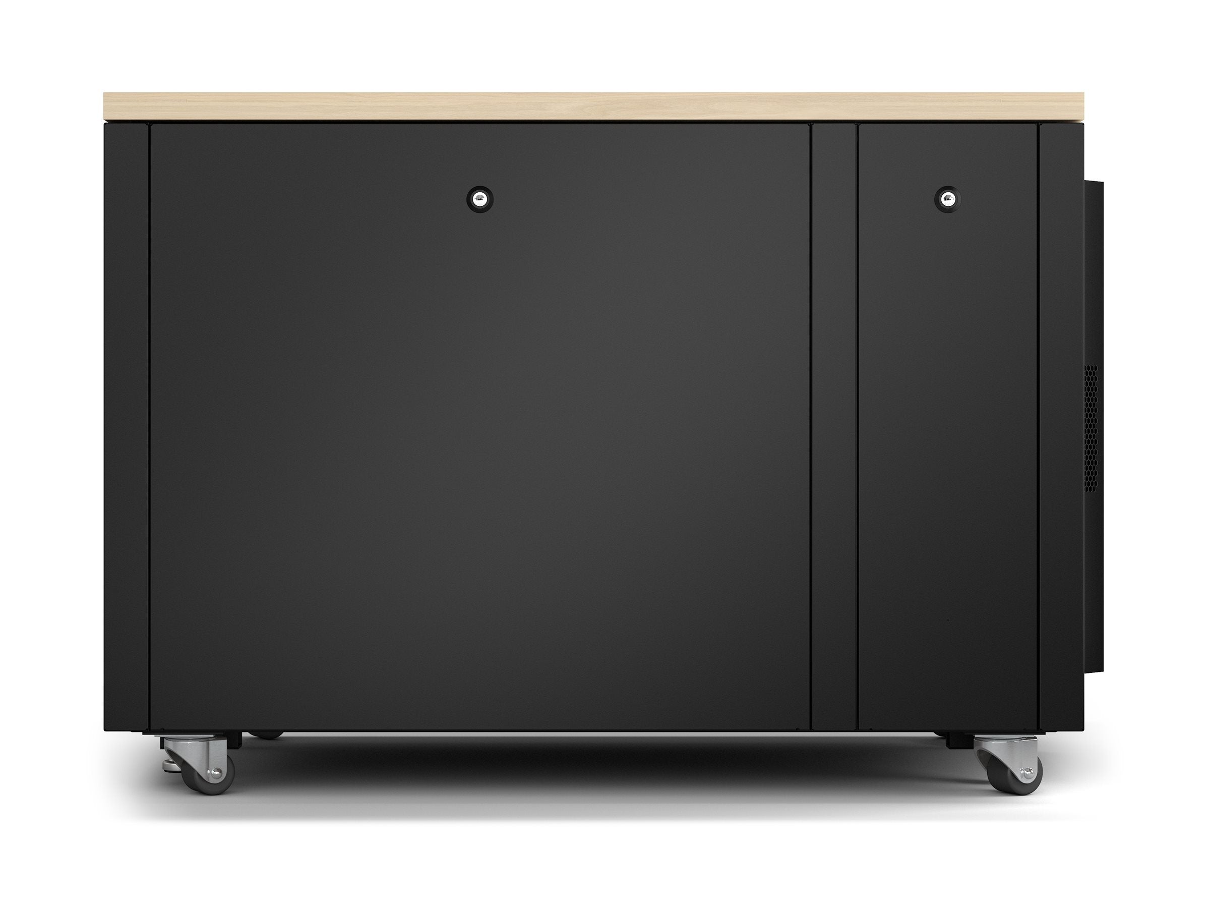 AR4012A finition érable est entièrement prémonté, il se compose d'une armoire, de modules de ventilation, de pieds réglables, de roulettes, d'un bandeau de 4 prises C13 et d'une connexion d'entrée C14.
