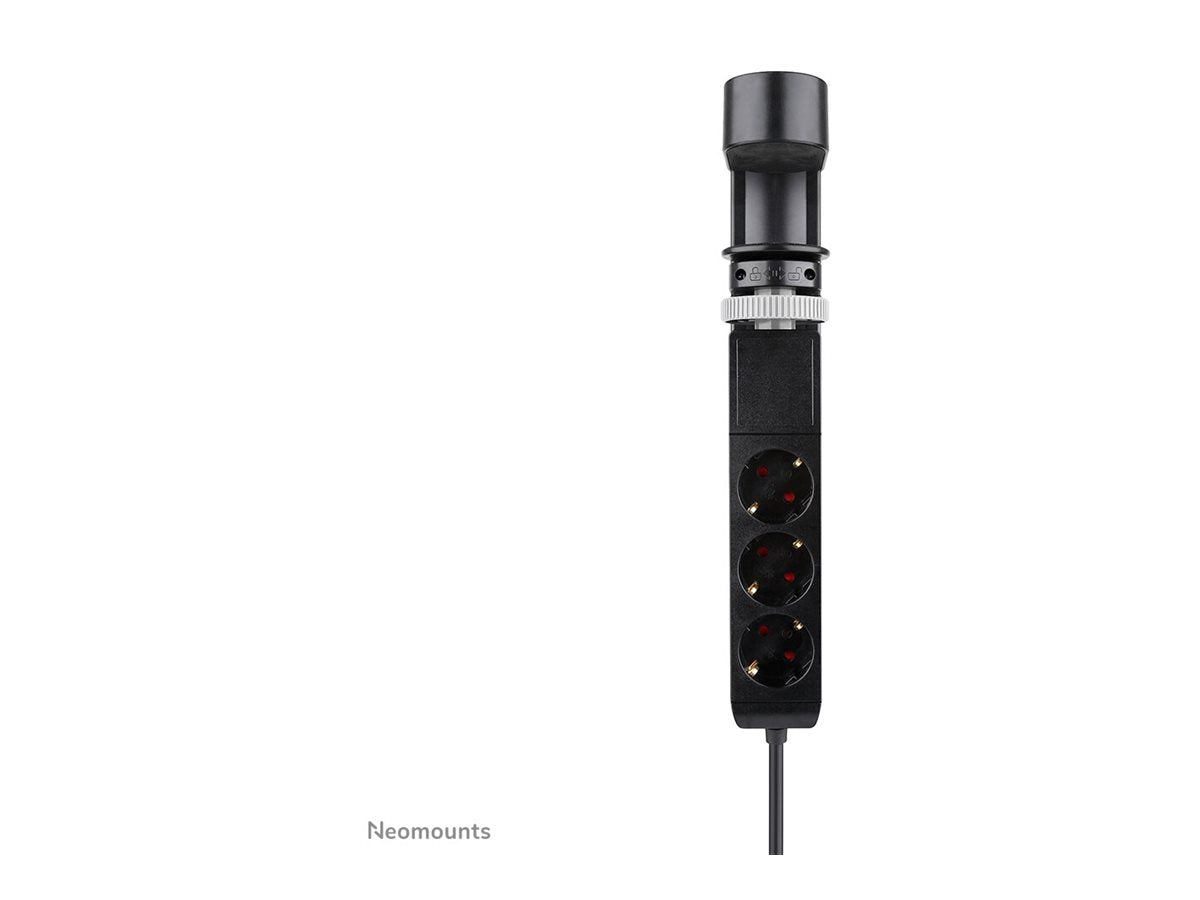 Neomounts - Coupe-circuit - USB-C + USB-A - CA 230 V - 3680 Watt - entrée : Type F - connecteurs de sortie : 3 (2 x 24 broches USB-C (PD), USB, 3 x alimentation Type F) - 1.4 m cordon - noir - avec support de bureau à pinceLa multiprise Neomounts est conçue pour être pratique et polyvalente, offrant à la fois des connexions USB-C et USB-A. Cette multiprise est livrée avec un support de bureau à pince, ce qui permet de la fixer facilement sur votre espace de travail pour un accès rapide à l'alimentation. Elle est dotée d'un boîtier en plastique robuste et d'un interrupteur marche/arrêt, ce qui permet une utilisation sûre et facile. Le voyant lumineux permet de surveiller l'état de l'alimentation électrique, garantissant ainsi que tout fonctionne comme prévu. Avec une puissance de 3 680 W et un courant maximal de 16 A, elle permet d'alimenter plusieurs appareils simultanément. Dotée de trois prises de type F et de deux ports USB-C, cette multiprise est idéale pour recharger divers appareils. Le cordon de 1,4 m offre une grande portée pour se connecter aux sources d'alimentation sans encombrer votre espace de travail. Conçue pour répondre aux normes de conformité GS et IP20, cette multiprise garantit sécurité et fiabilité pour une utilisation quotidienne, que ce soit à la maison ou au bureau.