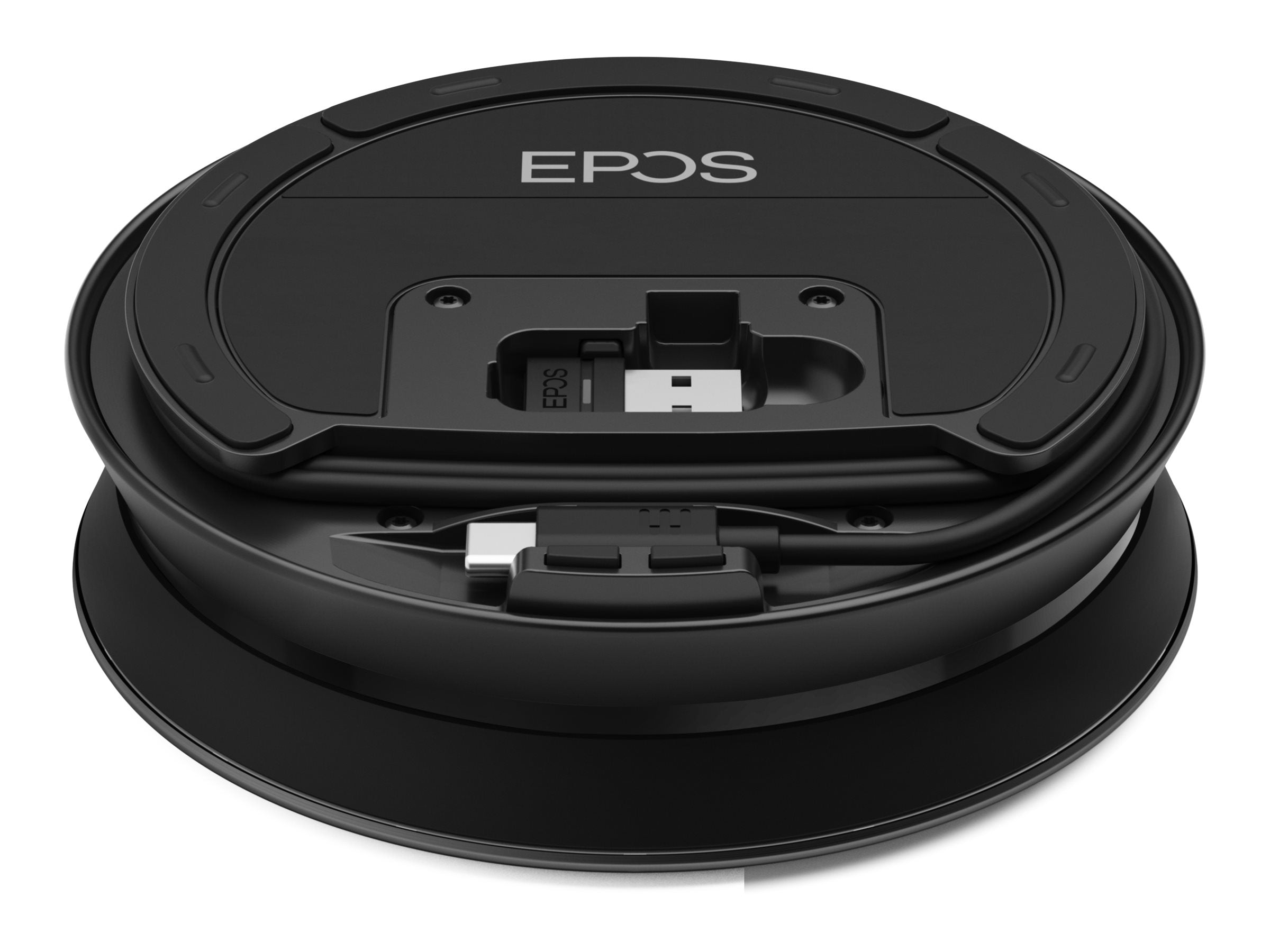 EPOS EXPAND 40T - Haut-parleur intelligent - Bluetooth - sans fil, filaire - NFC* - USB-C - noir, gris - Certifié pour Microsoft TeamsSpeakerphone sans fil Bluetooth , épuré et portable aux performances audio exceptionnelles. Participez instantanément aux réunions et profitez d'un son cristallin des deux côtés de la ligne. Trois micros à formation automatique de faisceaux isolent les voix de la réverbération et du bruit ambiant dans la pièce, pour une expérience audio riche et dynamique.