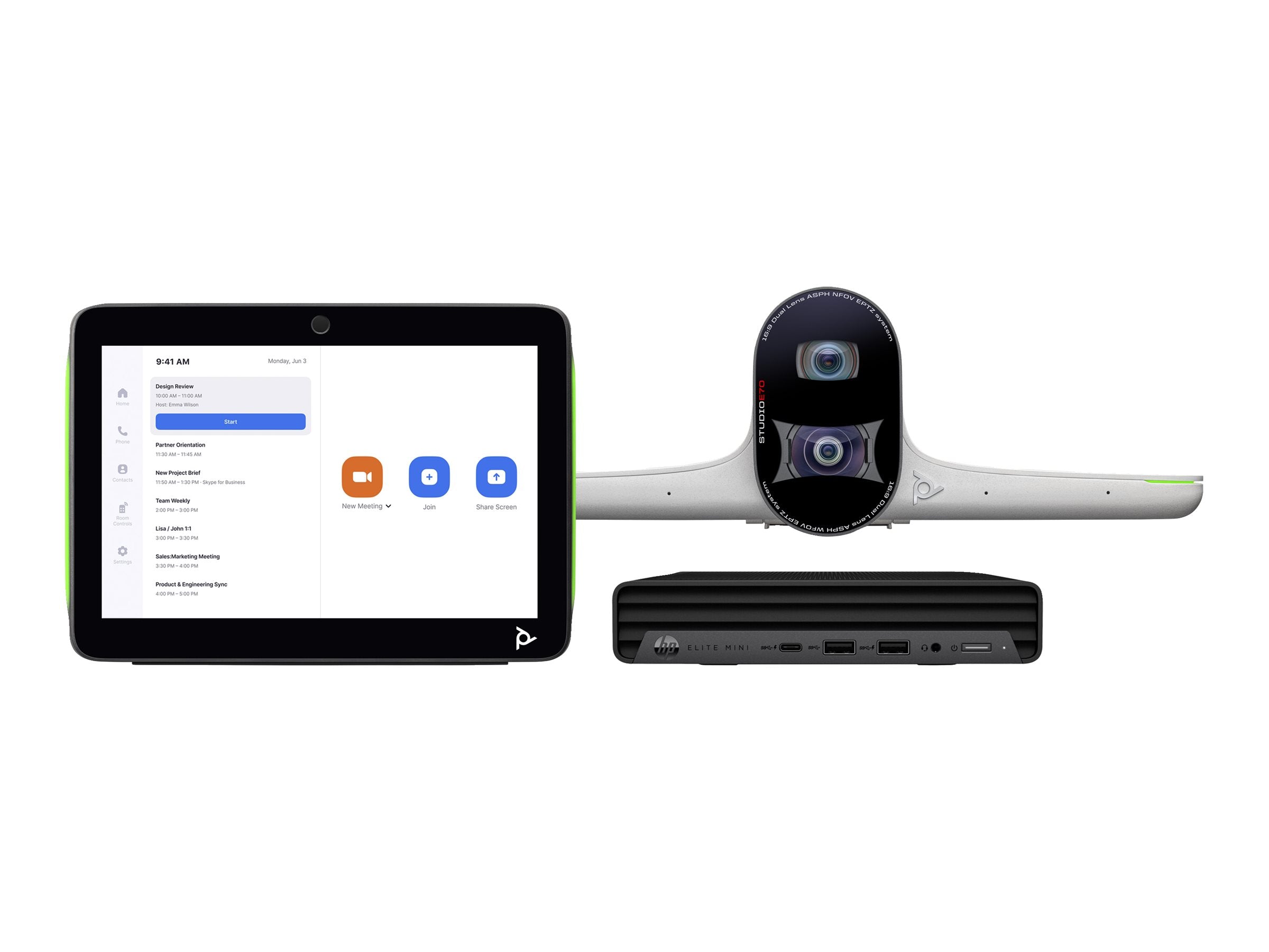 Poly Studio Large Room Bundle - Pour Zoom Rooms - kit de vidéo-conférence (caméra Poly Studio E70, contrôleur tactile Poly TC10, Mini PC de conférence HP) - certifié Zoom - blancÉlevez l'expérience de vos réunions virtuelles grâce à des fonctionnalités d'IA, pour une collaboration immersive. Rejoignez les Zoom Rooms et profitez d'une résolution vidéo élevée, du cadrage intelligent de la caméra et d'un PC de conférence sécurisé. Faites l'expérience du futur grâce aux packs Poly Studio Room.