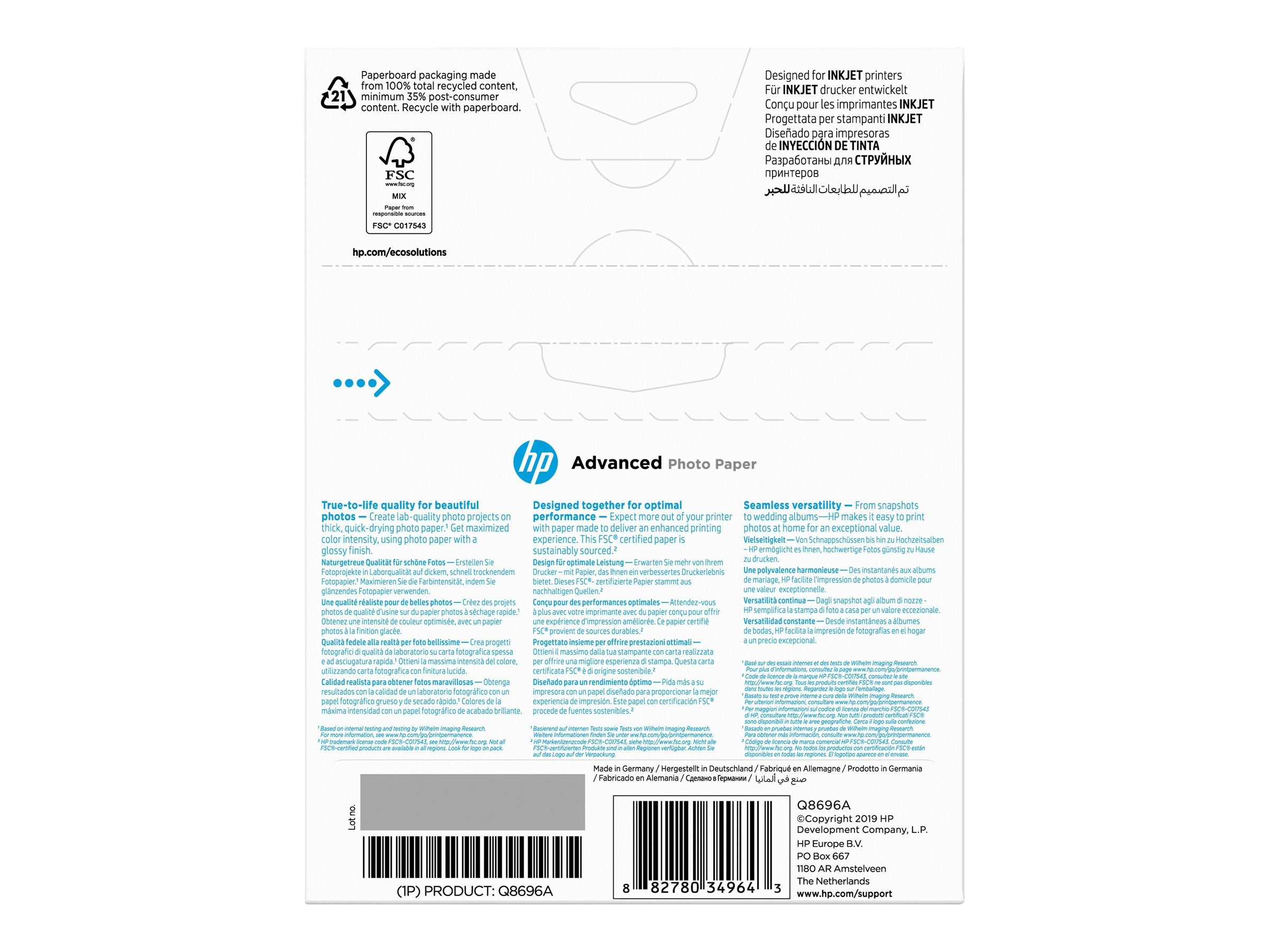 HP original Advanced glossy photo paper Ink cartridge Q8696A 250g/m2 130x180mm 25 sheets 1-pack borderless HP original Advanced glossy photo paper Ink cartridge Q8696A 250g/m2 130x180mm 25 sheets 1-pack borderless HP original Advanced glossy photo paper Ink cartridge Q8696A 250g/m2 130x180mm 25 sheets 1-pack borderless