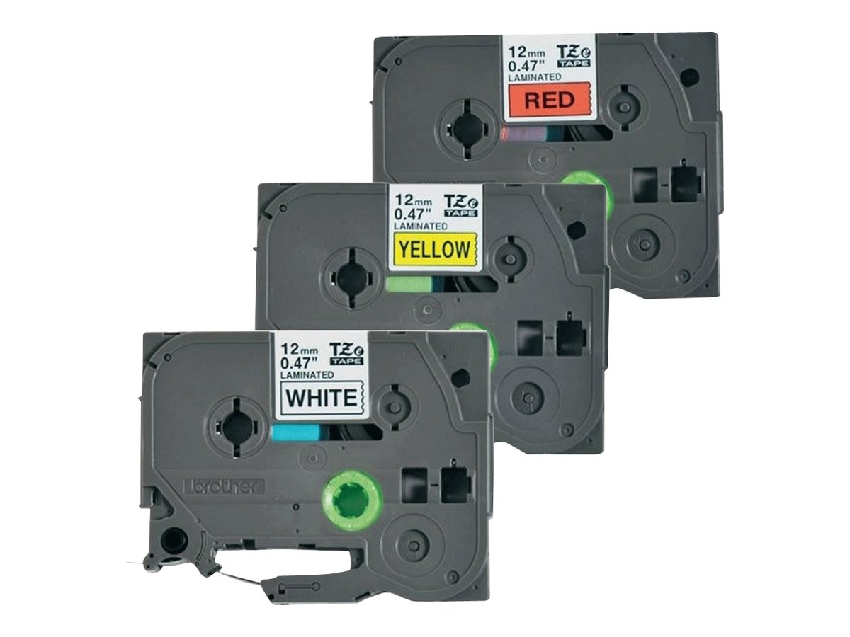 Brother TZe-31M3 - Noir sur rouge, noir sur blanc, noir sur jaune - Rouleau (1,2 cm x 8 m) 3 cassette(s) ruban laminé - pour P-Touch PT-1000, 1010, 1080, 1090, 1280, 1830, 3600, 7500, 7600, 900, E100, E550, H100
