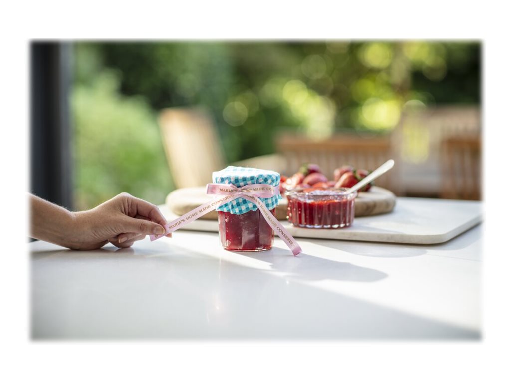 Lors d'occasions spéciales, utilisez le ruban TZe-RE34 avec votre étiqueteuse P-touch pour adresser vos meilleurs vœux aux personnes qui vous sont chères.  Laissez libre cours à vos talents et personnalisez vos cadeaux, vos cartes et vos créations avec le ruban tissu TZe-RE34 Brother original.