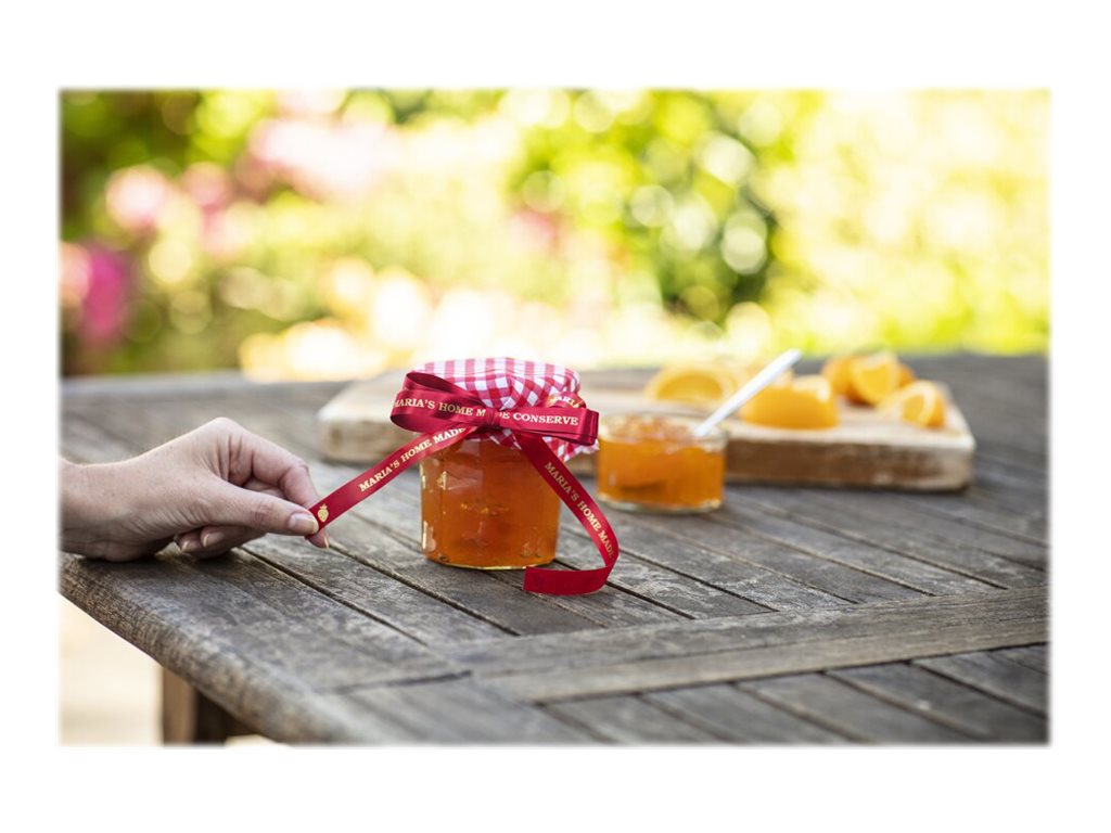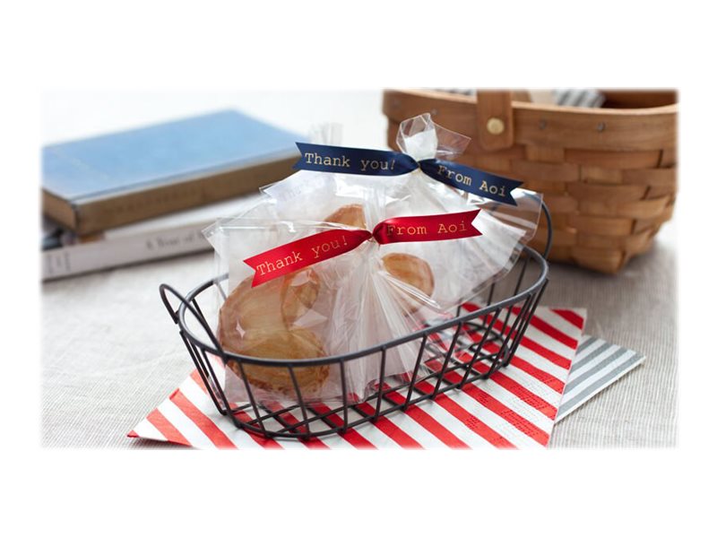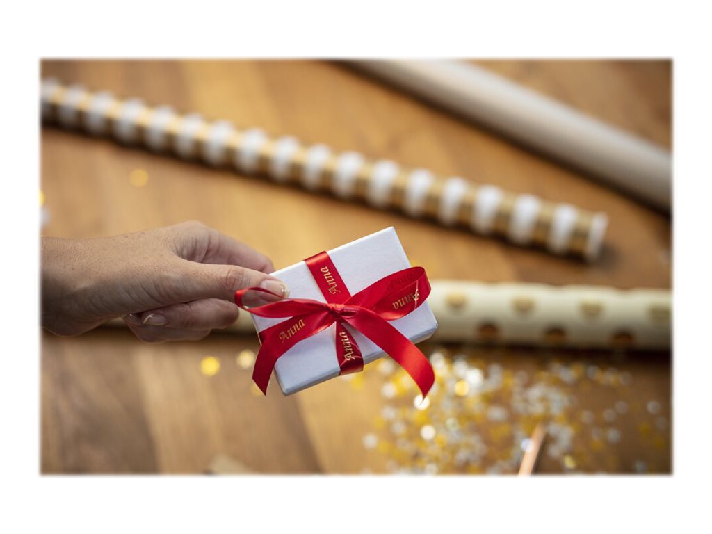 Lors d'occasions spéciales, utilisez le ruban TZe-RW34 avec votre étiqueteuse P-touch pour adresser vos meilleurs vœux aux personnes qui vous sont chères.  Laissez libre cours à vos talents et personnalisez vos cadeaux, vos cartes et vos créations avec le ruban tissu TZe-RW34 Brother original.