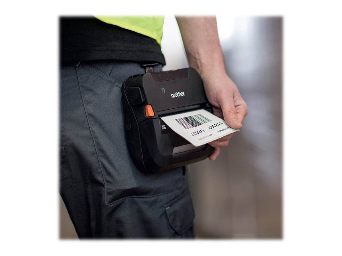 Brother RuggedJet RJ-4230B - Imprimante de reçus - thermique direct - Rouleau (11,4 cm) - 203 x 203 ppp - jusqu'à 127 mm/sec - USB 2.0, Bluetooth 4.2Optimisez votre productivité. Imprimez dans les environnements les plus difficiles avec l'imprimante mobile pour reçus et étiquettes 4 pouces de Brother.