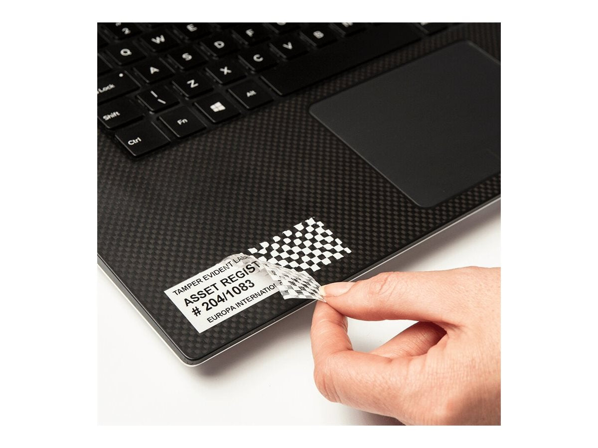 Idéal pour créer des étiquettes de test de sécurité électrique, ce ruban laminé fera en sorte que votre étiquette ne puisse être retirée d'un endroit et placée à un autre. Une fois que la bande de sécurité TZe-SE5 inviolable est retirée l'étiquette laisse un motif en damier, détruisant l'impression pour empêcher l'étiquette d'être réappliquée.