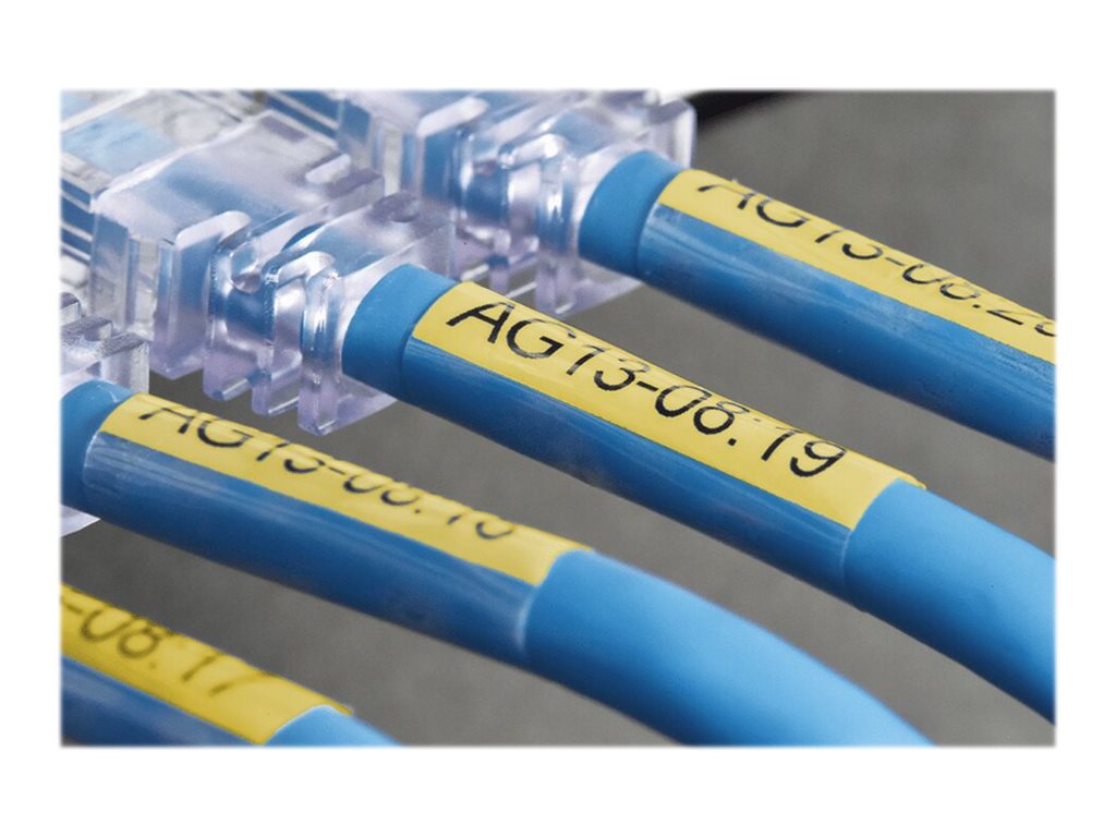 Comme le texte de l'étiquette est protégé par une couche laminée qui est appliquée automatiquement lors de l'impression, cette étiquette de 24 mm de largeur peut être enroulée autour des câbles CAT6A de plus grand diamètre tout en assurant la protection de votre texte contre l'abrasion et d'autres conditions extrêmes.