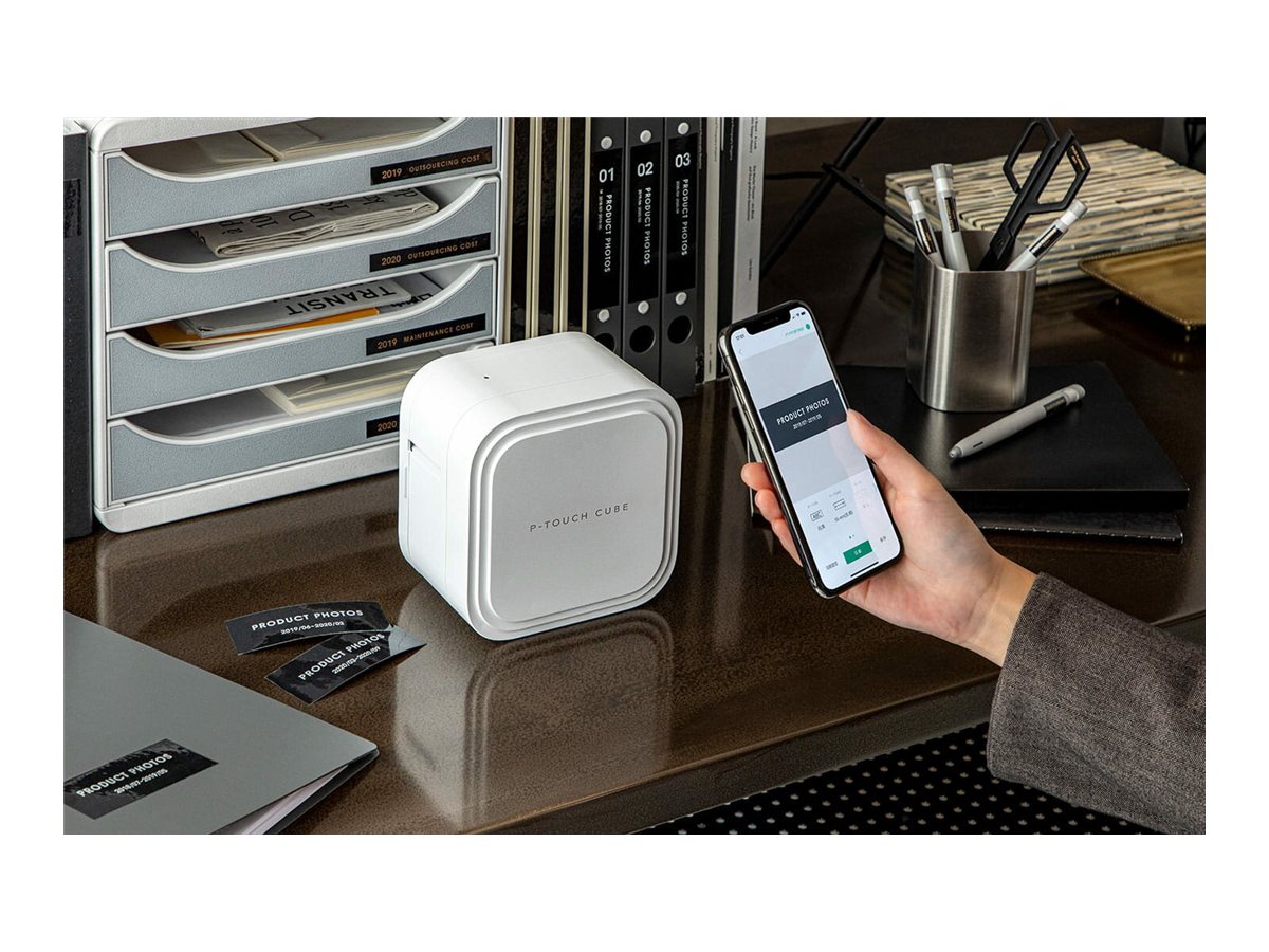 Avec une batterie rechargeable intégrée et la capacité d'imprimer des étiquettes jusqu'à 36 mm de large depuis votre PC, Mac, iOS et Android, la P-touch CUBE Pro est l'étiqueteuse parfaite pour la gestion d'installations, l'organisation des bureaux, l'affichage des magasins et de nombreuses autres utilisations.