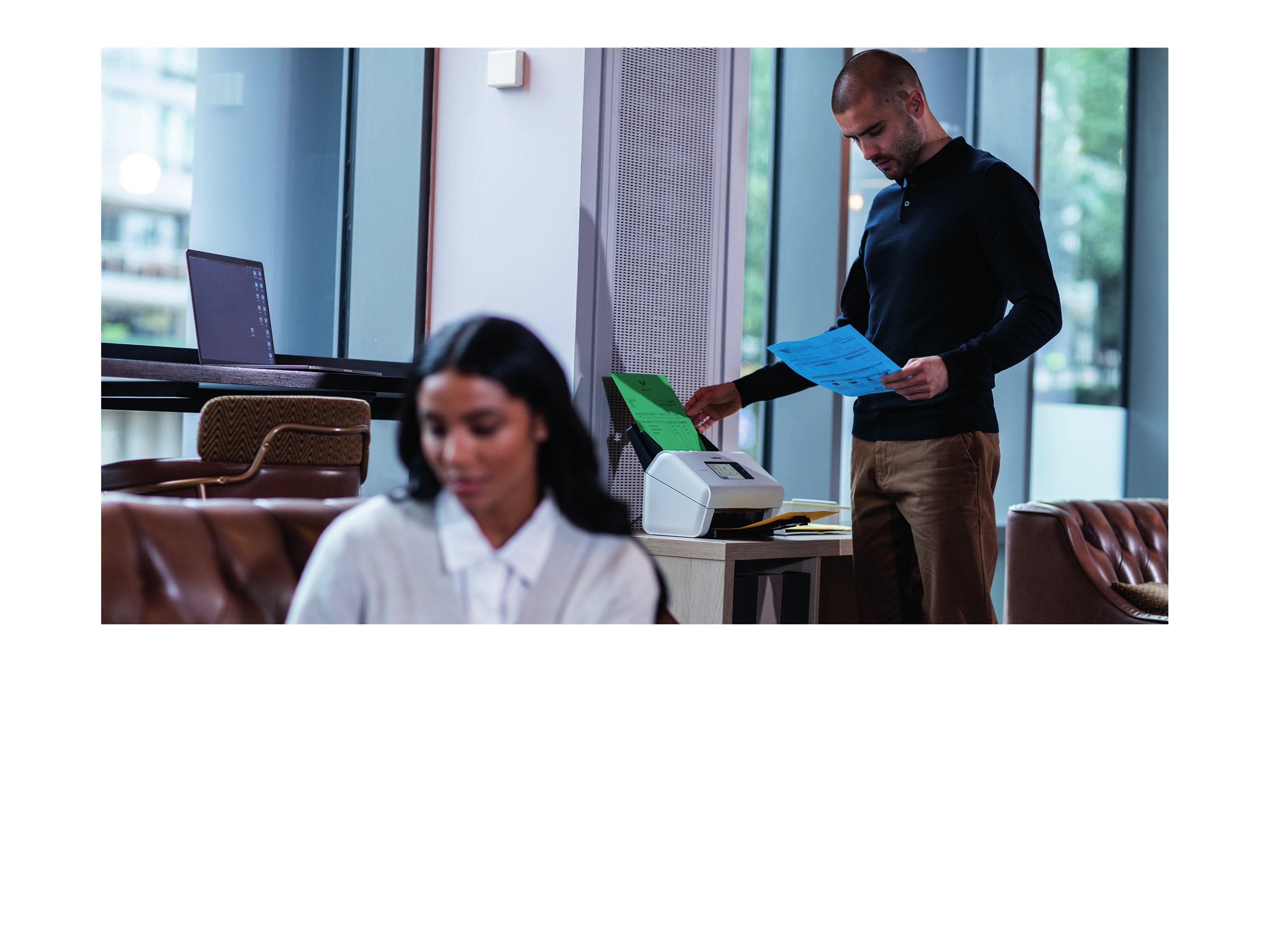 Brother ADS-4900W - Scanner de documents - CIS Double - Recto-verso - A4 - 600 dpi x 600 dpi - jusqu'à 60 ppm (mono) / jusqu'à 60 ppm (couleur) - Chargeur automatique de documents (100 feuilles) - jusqu'à 9000 pages par jour - USB 3.0, LAN, Wi-Fi(n), USB 2.0 (Host)Pour une numérisation en continu de plusieurs lots de documents. Grâce à la simplicité de la numérisation en "One Touch", numérisez, envoyez et recevez en toute sécurité des documents professionnels, à la maison ou au bureau.