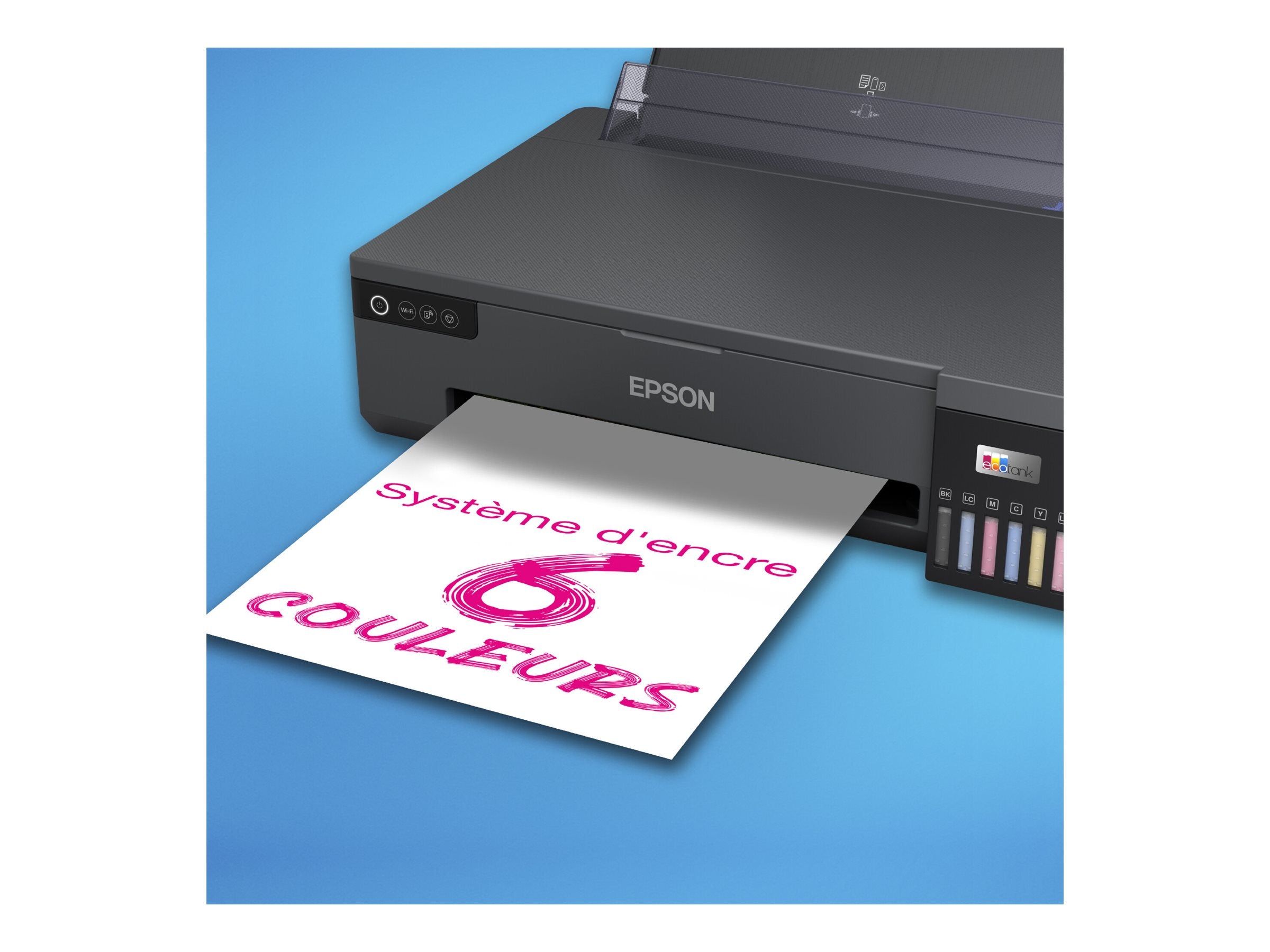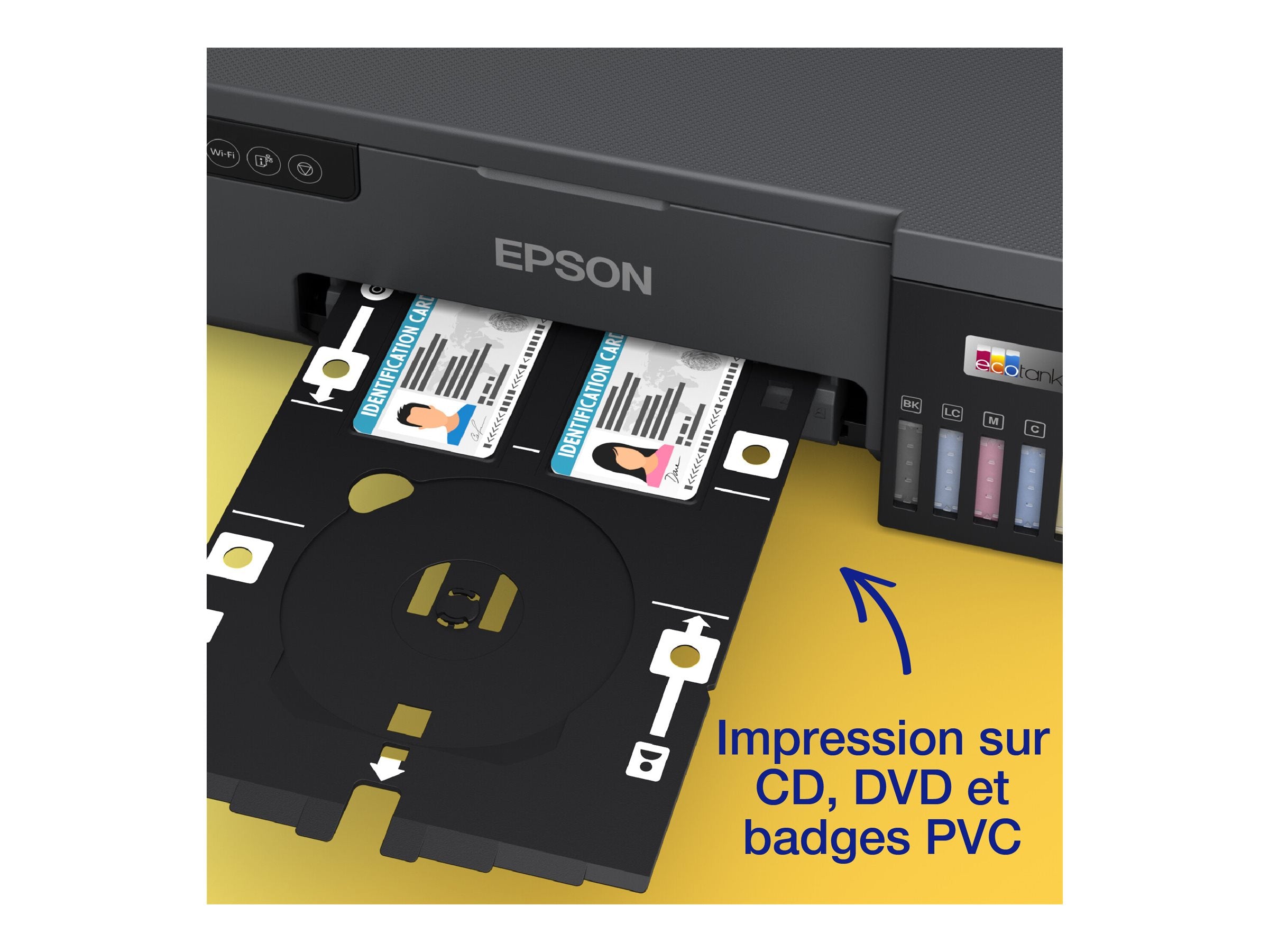 Epson EcoTank ET-18100 - Imprimante - couleur - jet d'encre - rechargeable - A3 - 5 760 x 1 440 ppp - jusqu'à 8 ppm (mono)/jusqu'à 8 ppm (couleur) - capacité : 80 feuilles - USB, Wi-FiAvec son coût ultra réduit par photo et sa capacité d'impression mobile, cette imprimante jet d'encre rapide sans cartouche est idéale pour une impression photo A3+ en grands volumes. Grâce à son design compact, ses bouteilles d'encre à détrompeurs et ses réservoirs d'encre frontaux à recharge simple, l'imprimante ET-18100 vous propose simplicité et gain d'espace. Compatible avec de nombreux médias, elle permet l'impression sur badges PVC, CD et DVD.