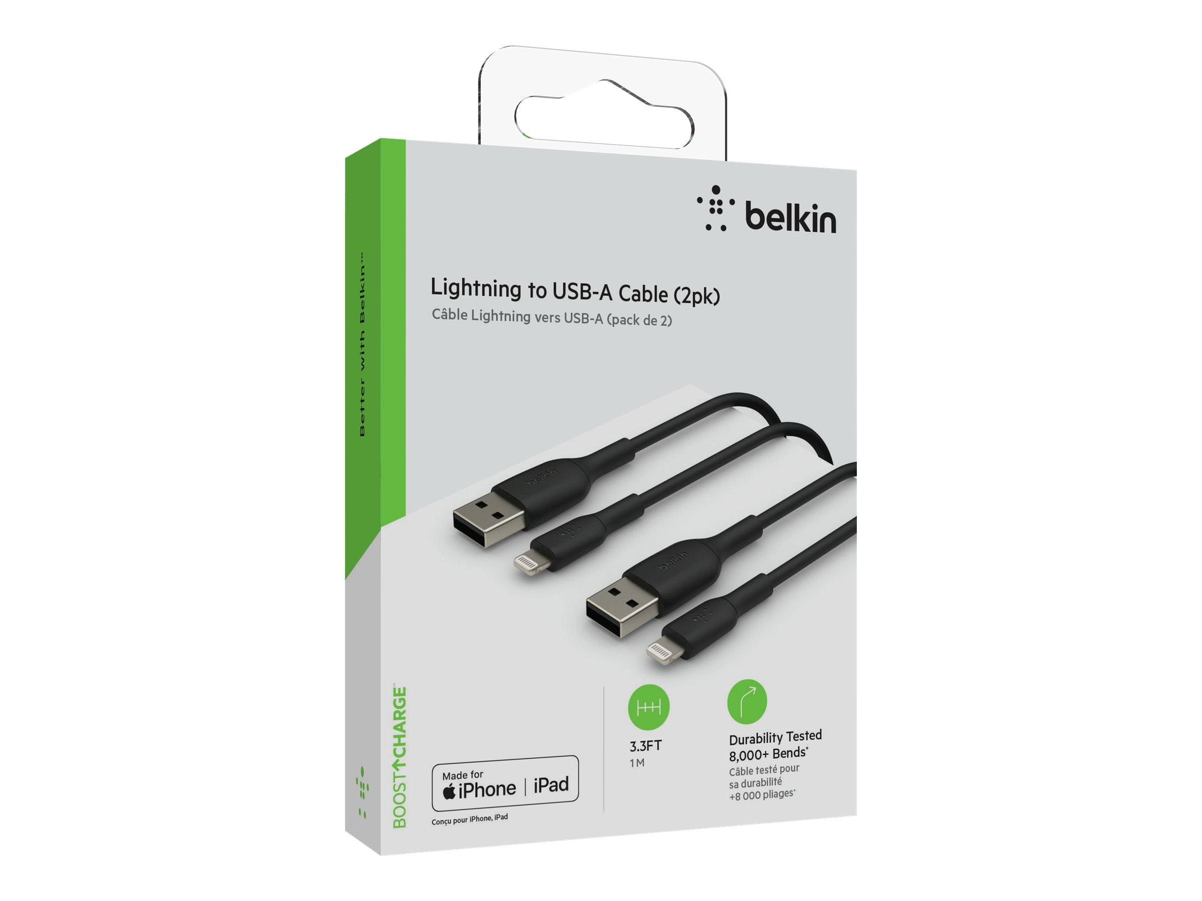 - BELKIN Câble USB-A vers Lightning 1m Pack de 2