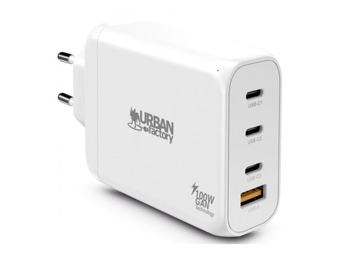 - URBAN FACTORY Powee Gan Charger USB-C 100W - 3 Port Usb-C 65W + 1 Port