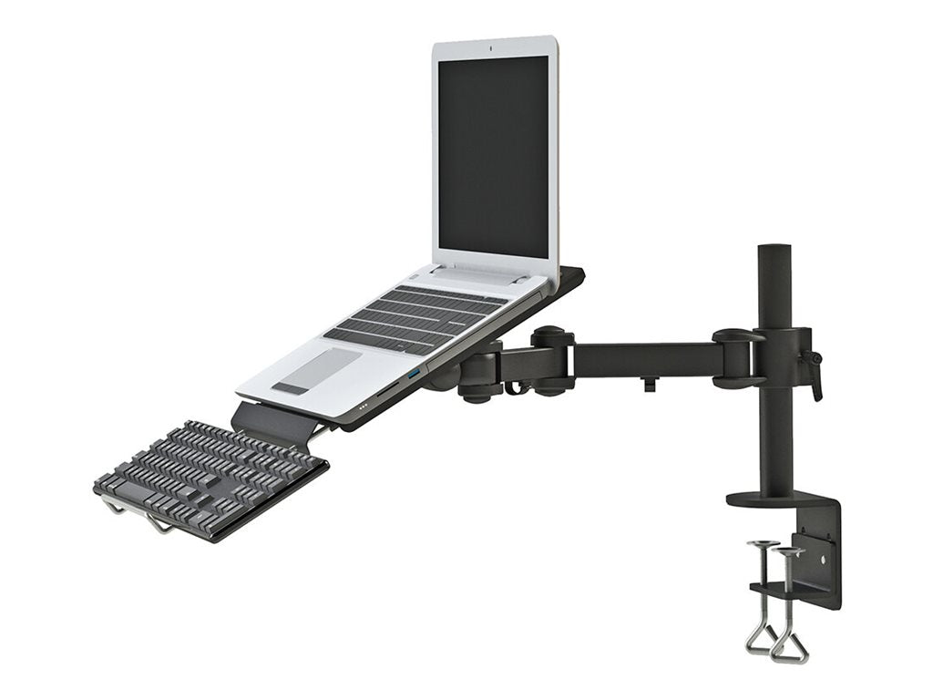 Neomounts NOTEBOOK-D100 - Kit de montage - pleine action - pour ordinateur portable - noir - Taille d'écran : 10"-22" - montrable sur bureauLe support de bureau pour notebook Neomounts, modèle NOTEBOOK-D100 est un support de bureau avec inclinaison et pivot pour notebook jusqu'à 22". Ce support est un excellent choix pour économiser de l'espace sur le bureau en utilisant une pince.