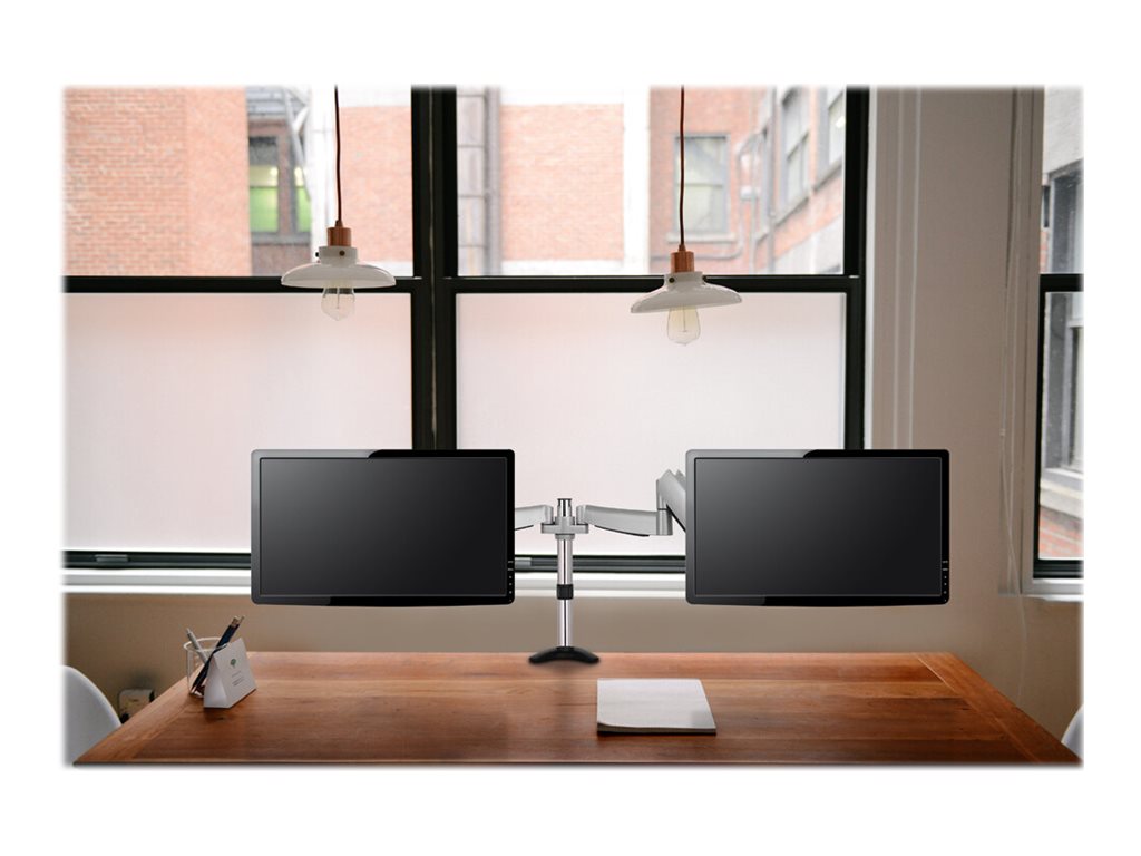 Neomounts FPMA-D950D - Kit de montage - pleine action - pour 2 écrans LCD - argent - Taille d'écran : 10"-27" - pinces montables, oeillet, montrable sur bureauLe support de bureau Neomounts, modèle FPMA-D950D, s'incline, se tourne et pivote, il est adapté pour deux écrans plats jusqu'à 27" (69 cm). Ce support est un excellent choix pour économiser de l'espace sur les bureaux en l'installant à l'aide d'une pince de bureau ou œillet à monter.