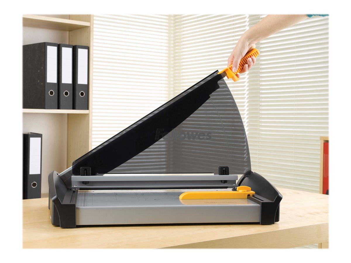Fellowes Plasma A4 - Cisaille - 380 mm - papierLes rogneuses Fellowes dotées du système de protection SafeCut offrent une plus grande sécurité et une meilleur précision de coupe pour des matériaux de grande qualité. Ce système SafeCut permet de les positionner comme les plus sûres et les plus faciles d'usage.