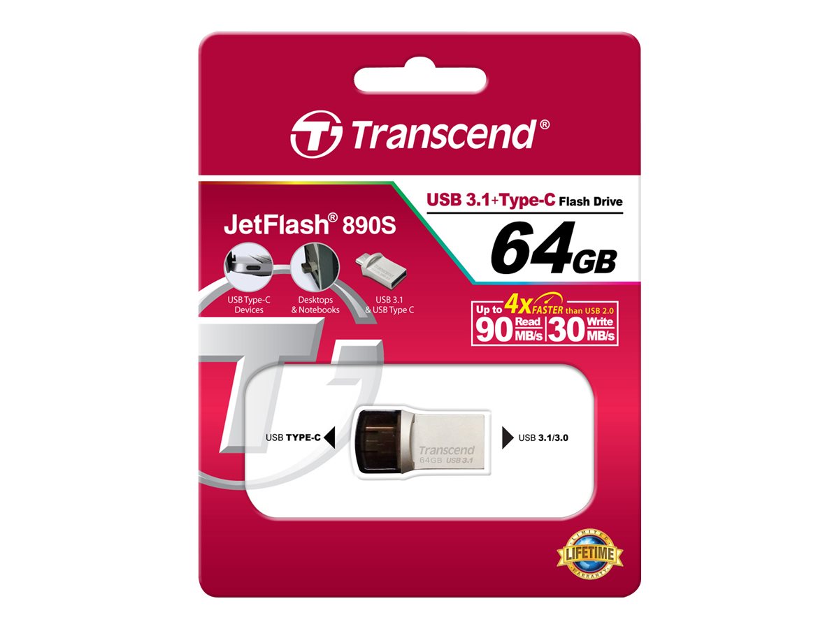 Transcend JetFlash 890 - Clé USB - 64 Go - USB 3.1Découvrez la nouvelle génération de connecteurs USB Type-C. La JetFlash 890 USB 3.1 OTG offre deux connecteurs - un USB Type-C réversible et un régulier en USB 3.1 (Gen 1) - qui transformeront vos habitudes de transfert de fichier avec les appareils équipés de ports USB Type-C comme les MacBook avec votre PC, portable ou Mac. L'application exclusive en téléchargement gratuit Transcend Elite App vous assistera dans la navigation parmi les fichiers stockés sur la JetFlash 890 et sauvegardera rapidement vos fichiers importants présents dans votre MacBook, smartphone ou tablette.